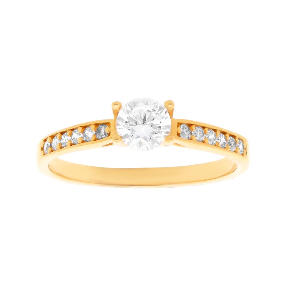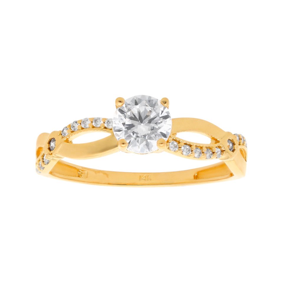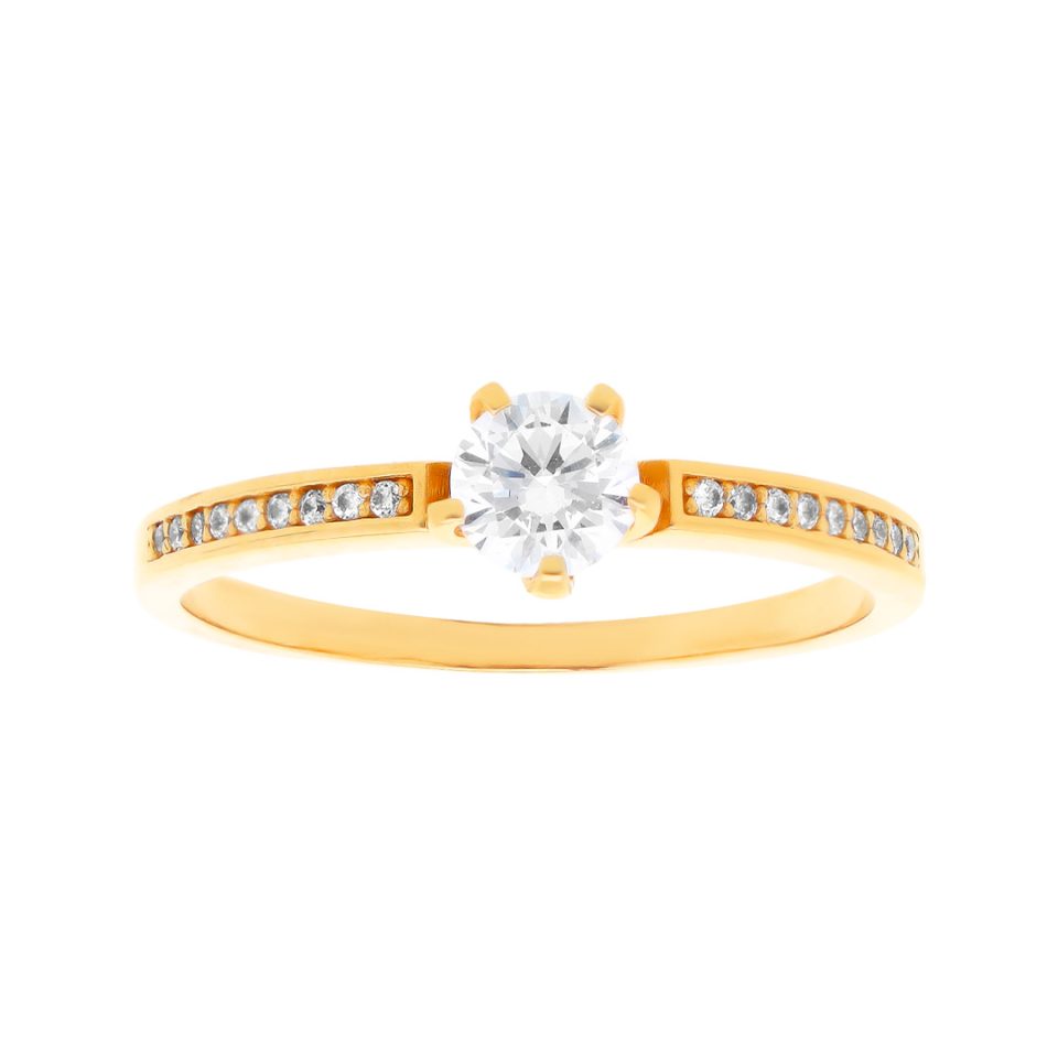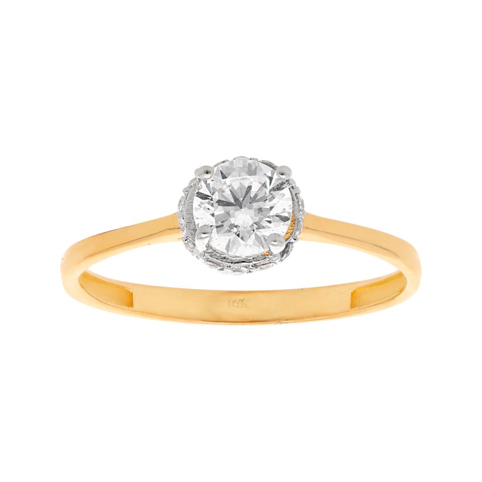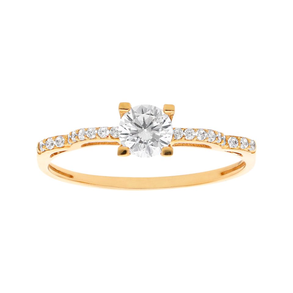 Anillo de compromiso en oro amarillo 14K con zirconia