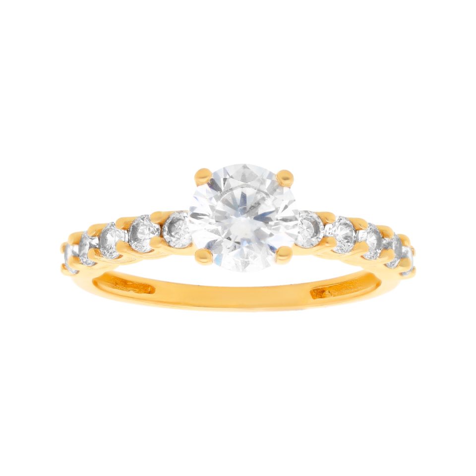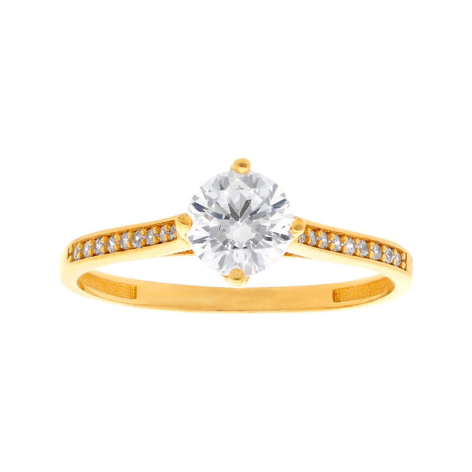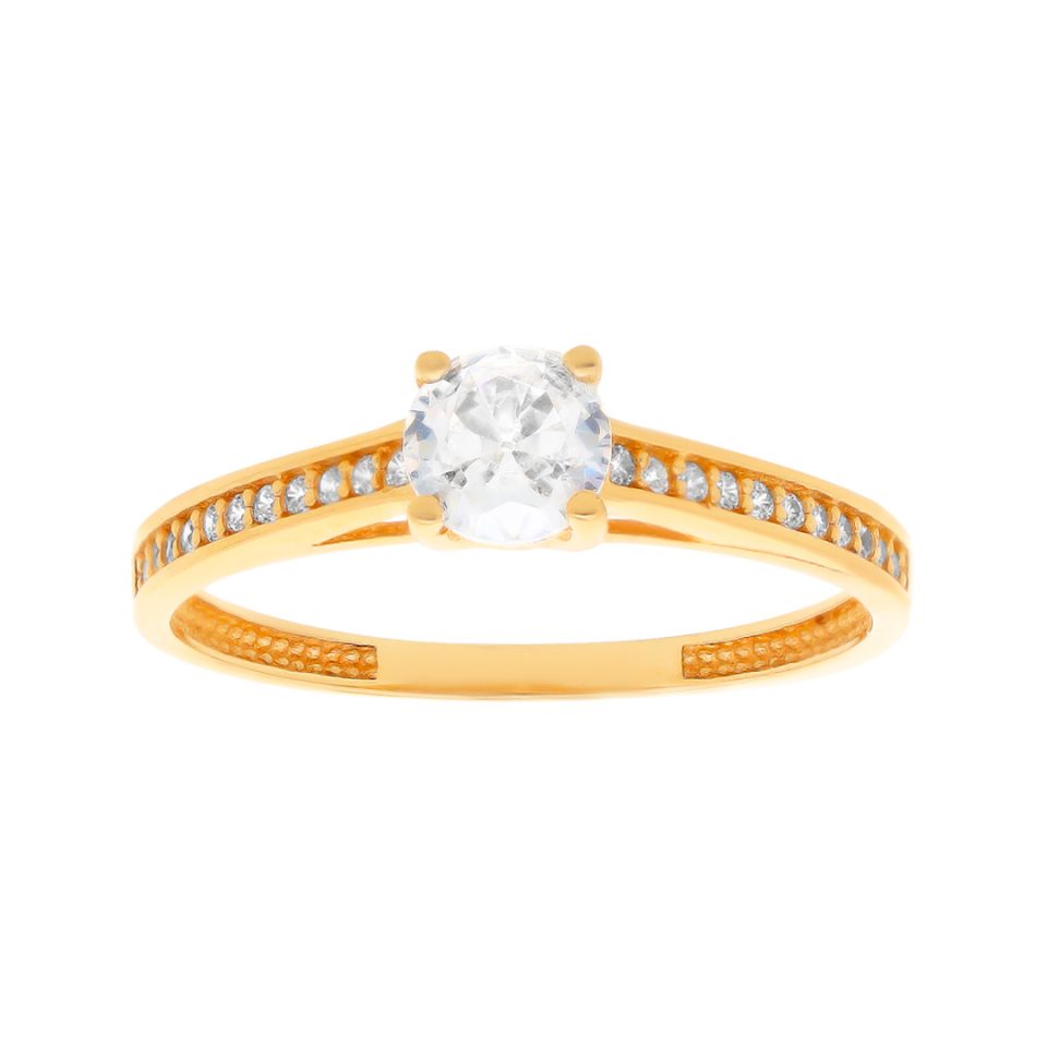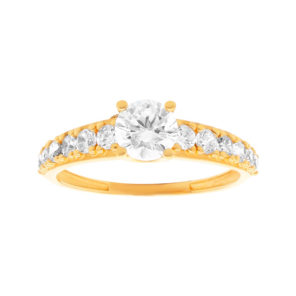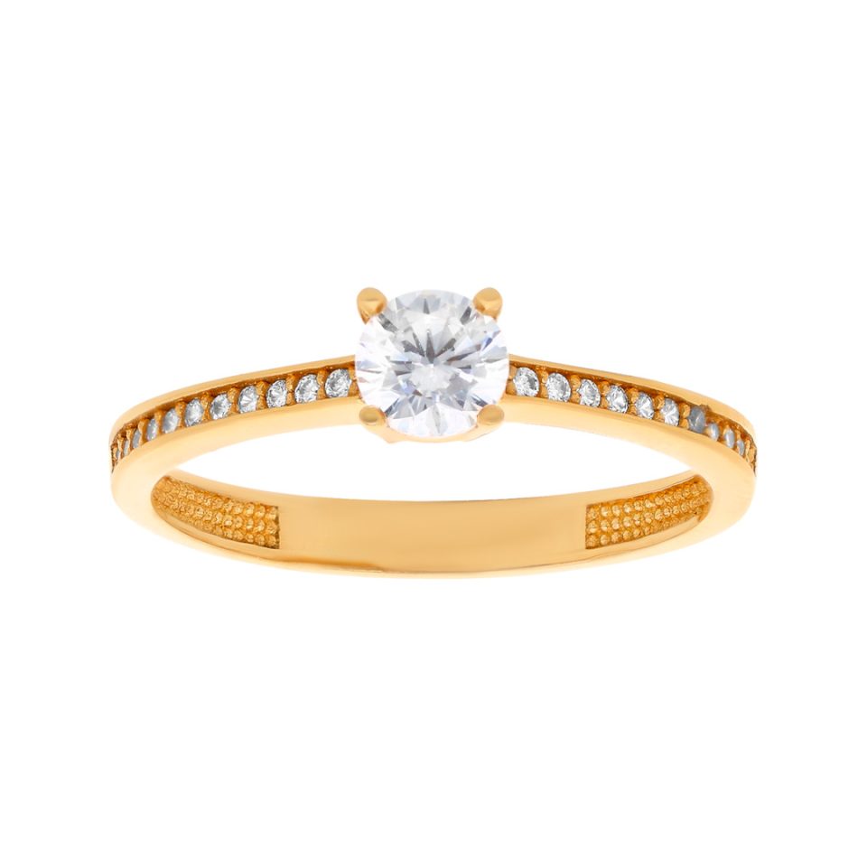 Anillo de compromiso en oro amarillo 14K con zirconia