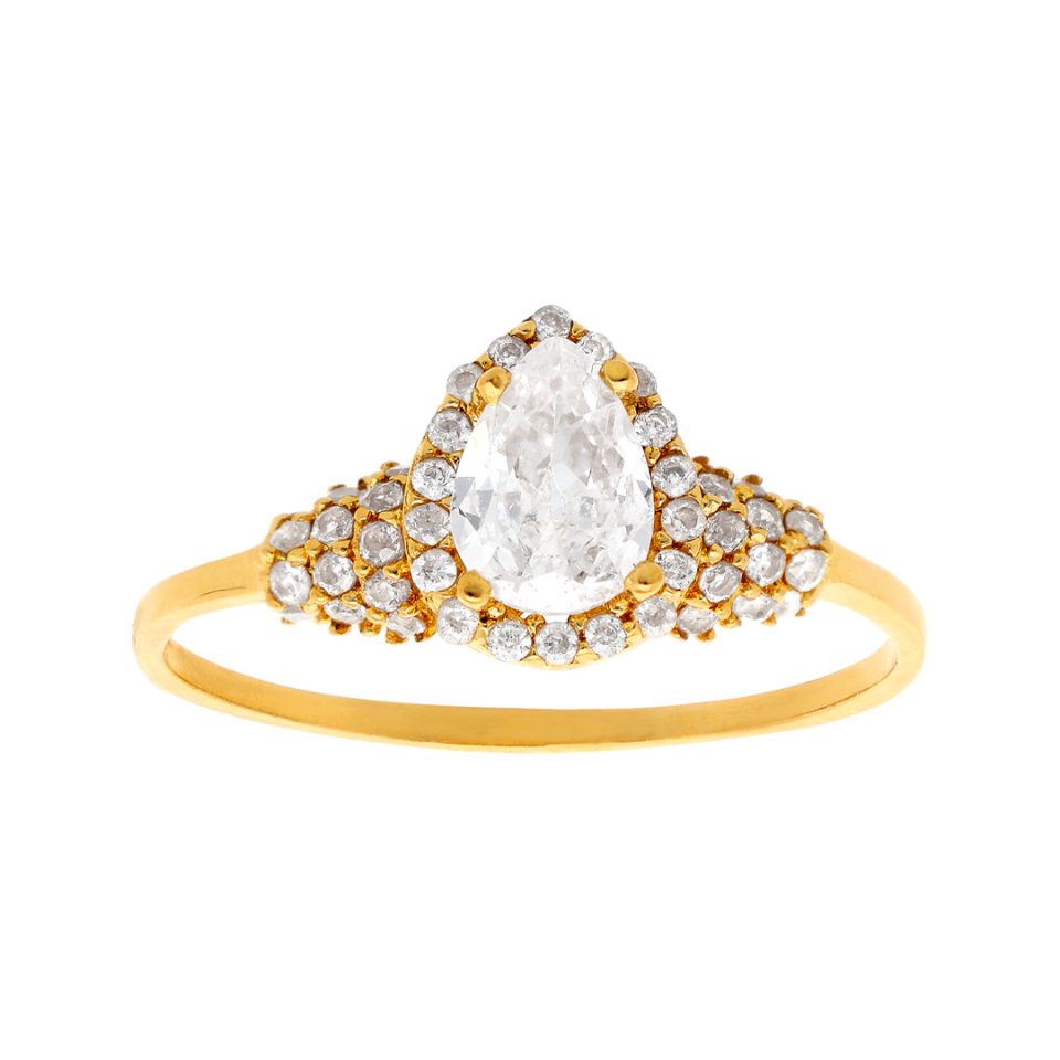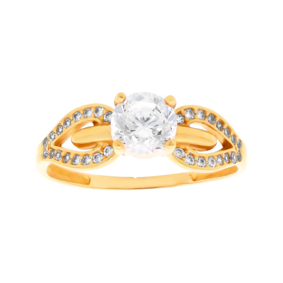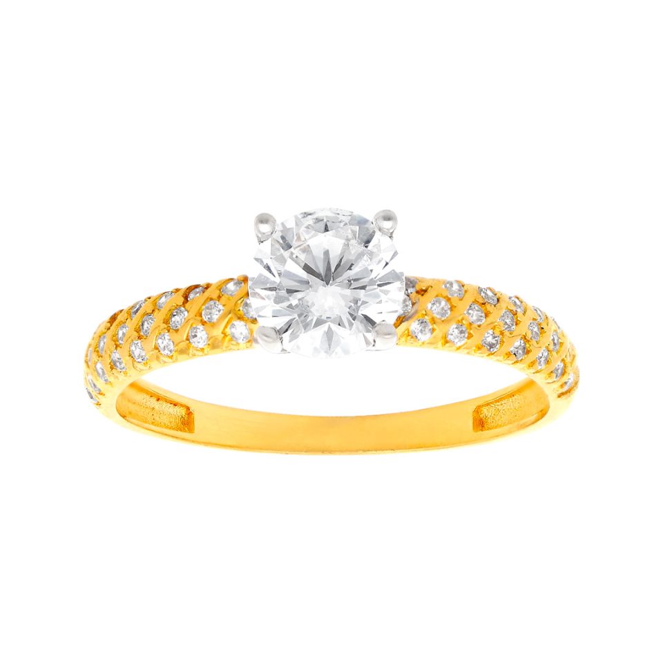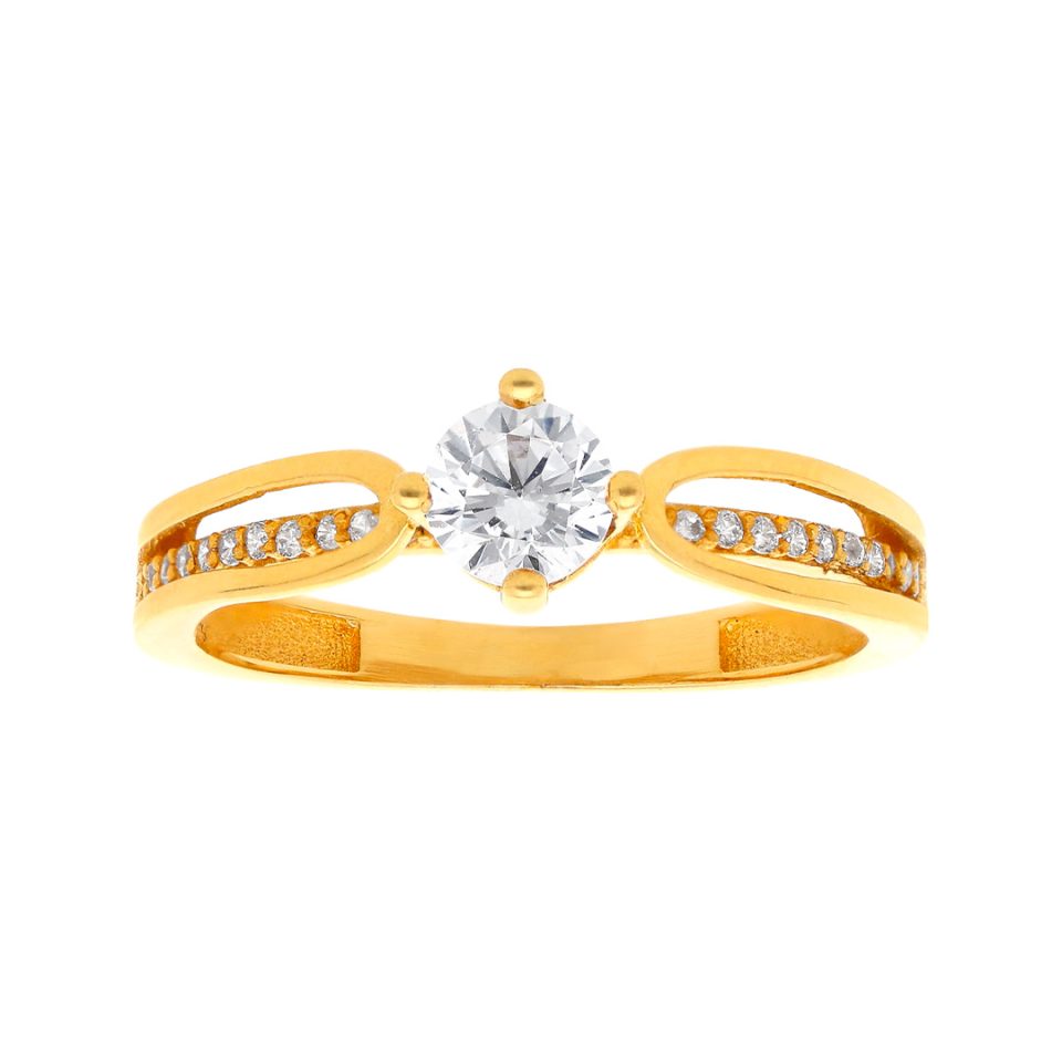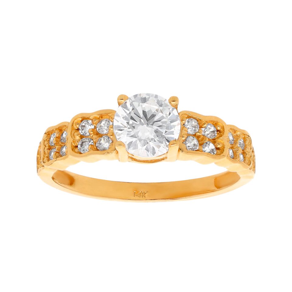 Anillo de compromiso en oro amarillo 14K con zirconia