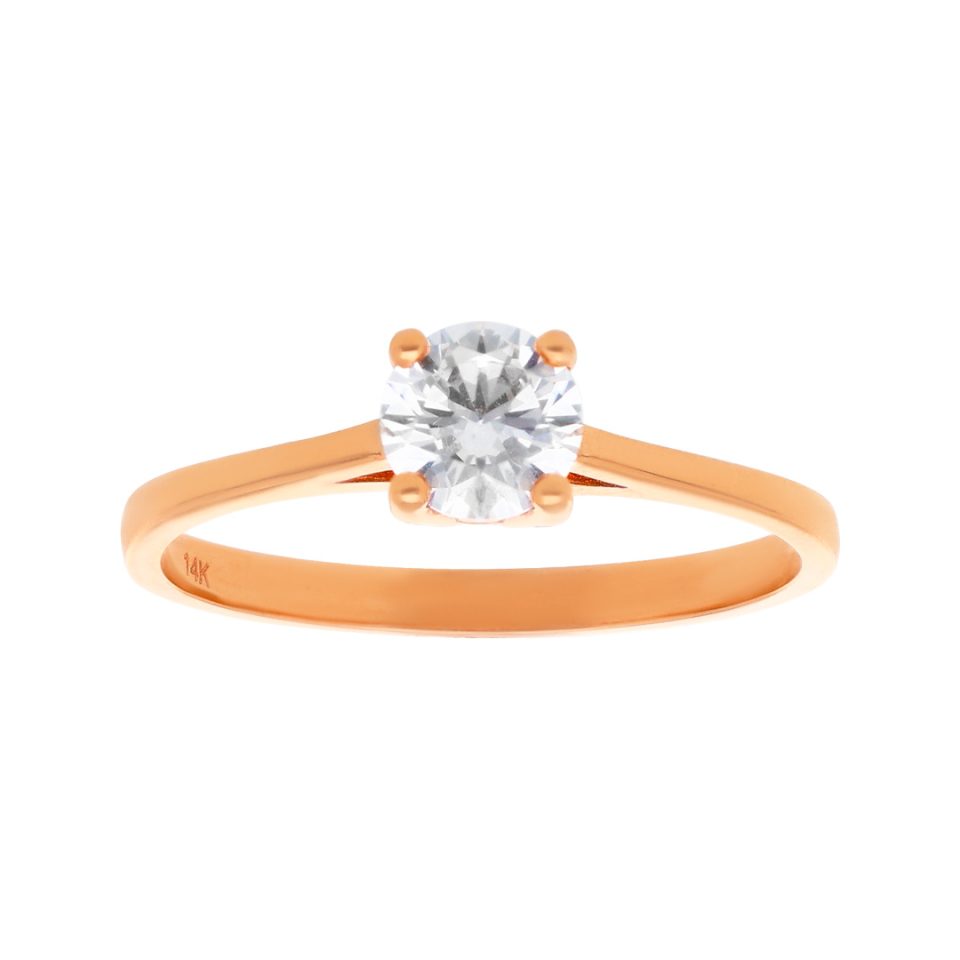 Anillo de compromiso en oro rosa 14K con zirconia