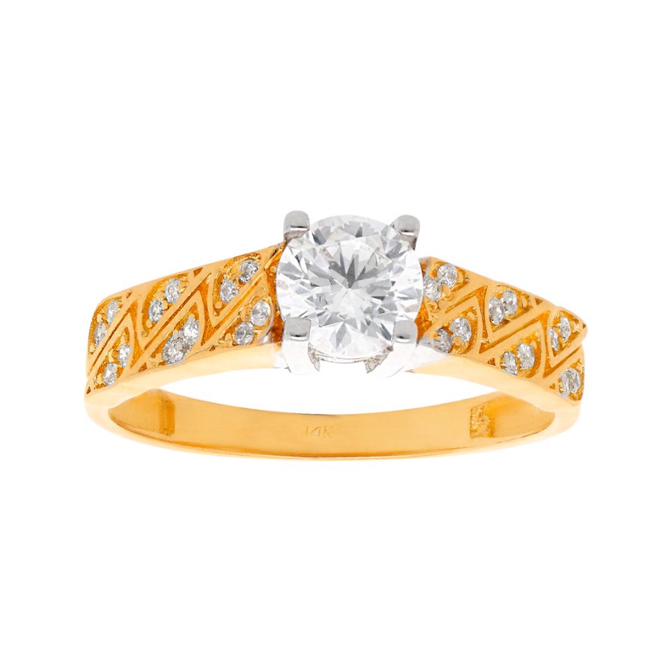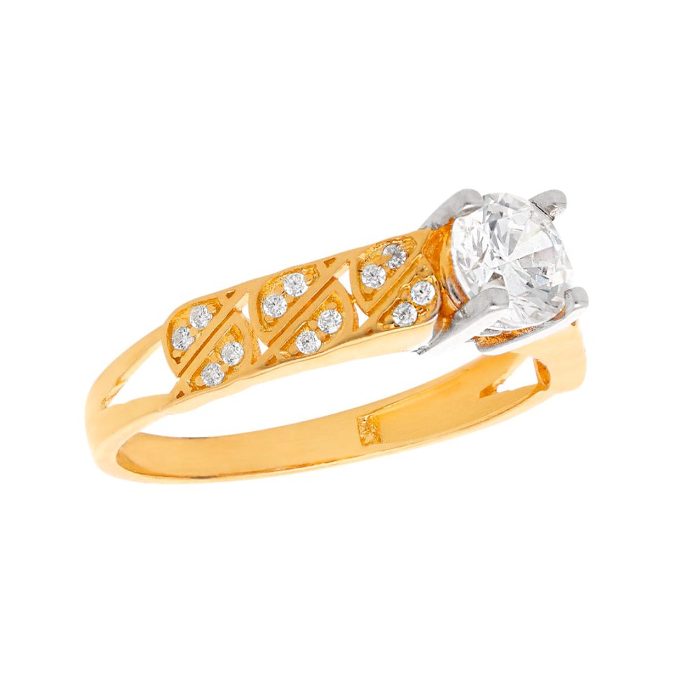 Anillo de compromiso en oro combinado 14K con zirconia