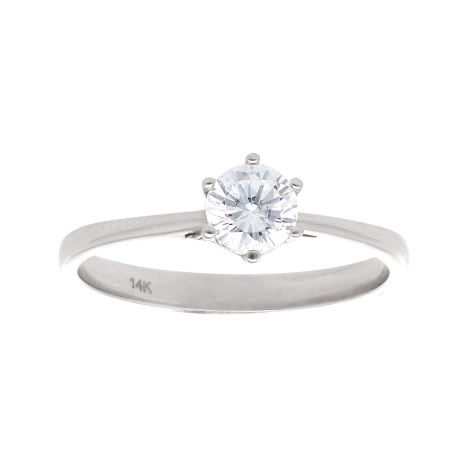Anillo de compromiso en oro blanco 14K con zirconia