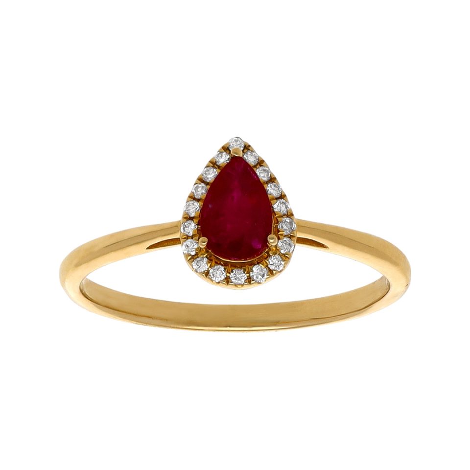 Anillo para dama en oro amarillo 14K con rubí y diamante