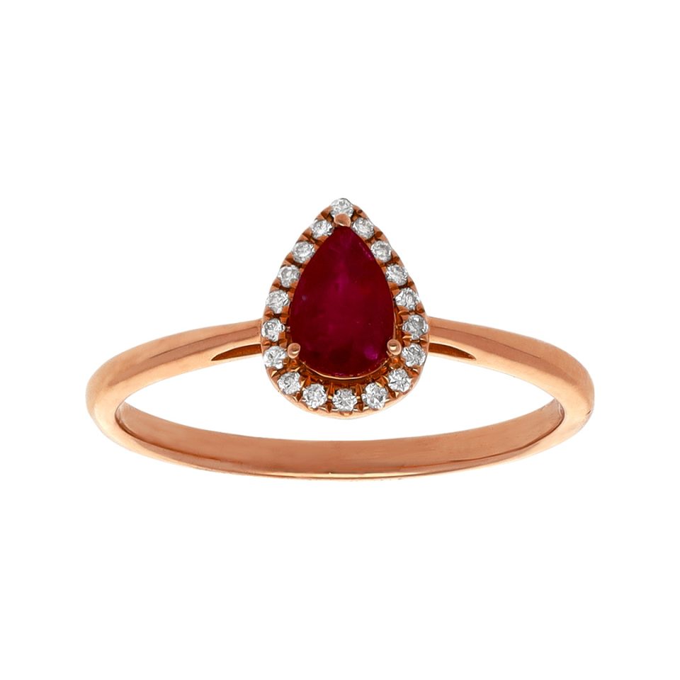 Anillo para dama en oro rosa 14K con rubí y diamante