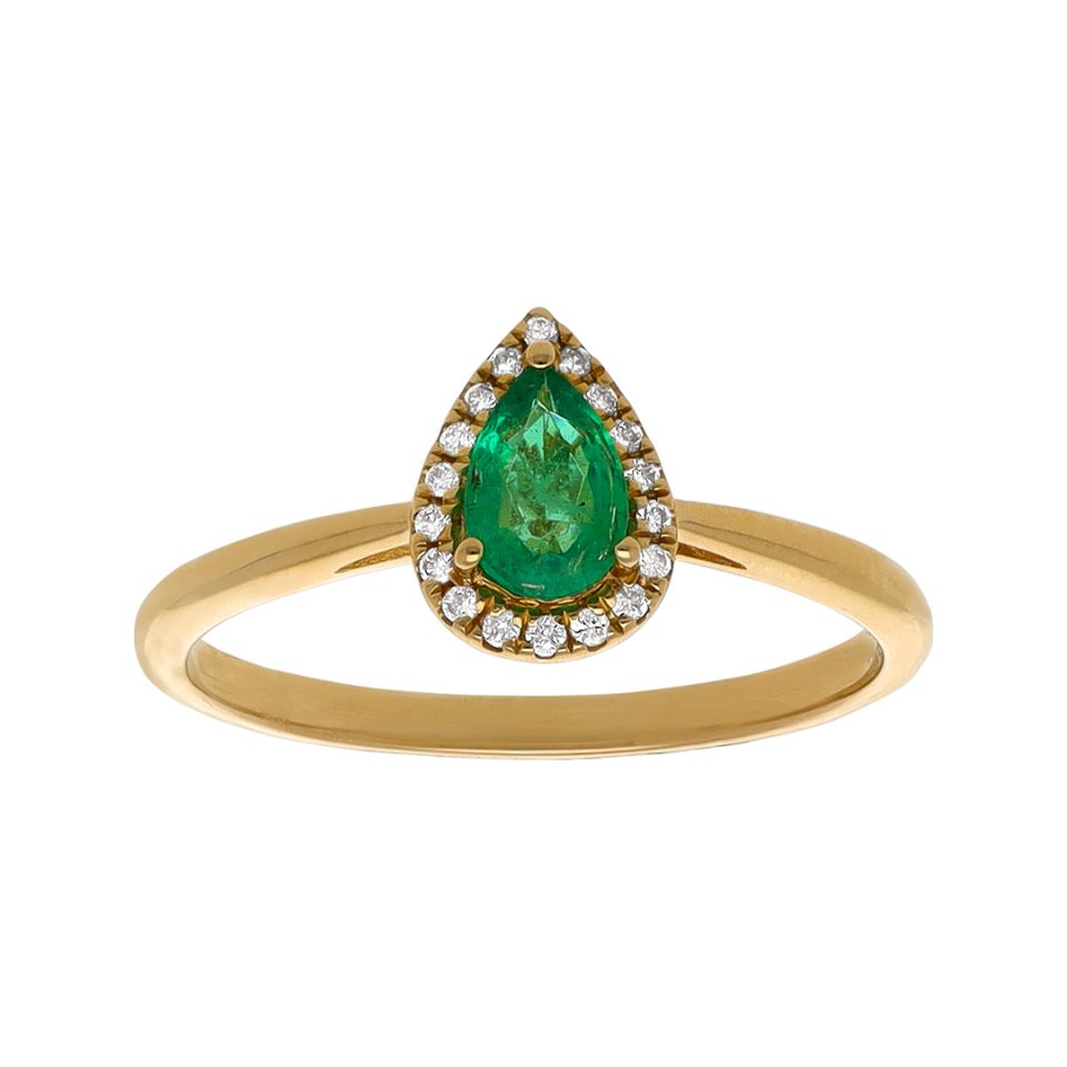 Anillo para dama en oro amarillo 14K con esmeralda y diamante