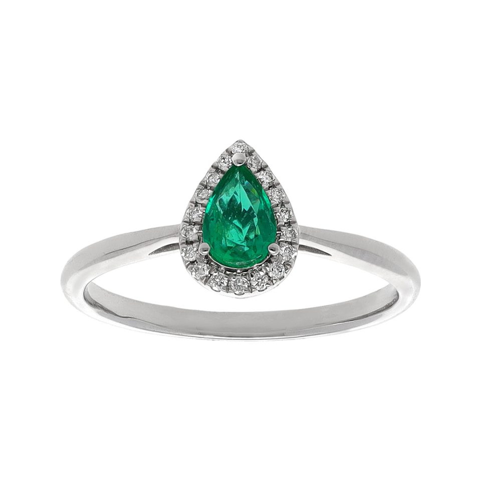 Anillo para dama en oro blanco 14K con esmeralda y diamante