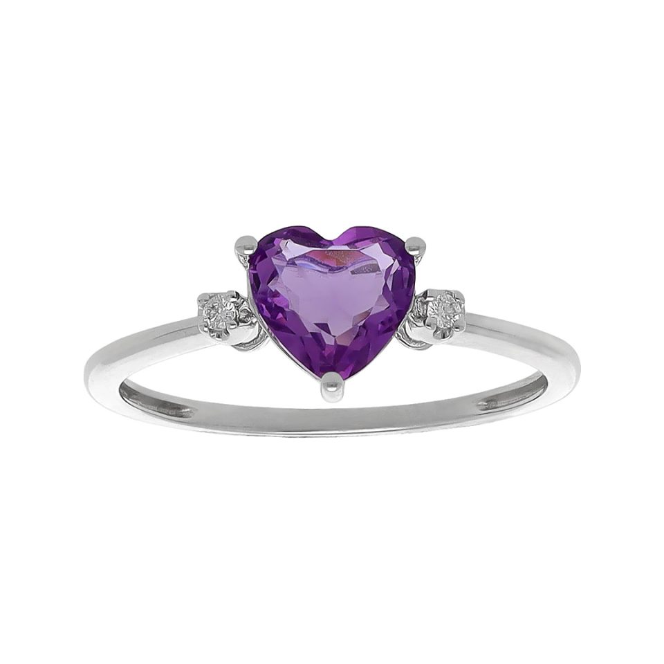 Anillo para dama en oro blanco 14K con amatista y diamante