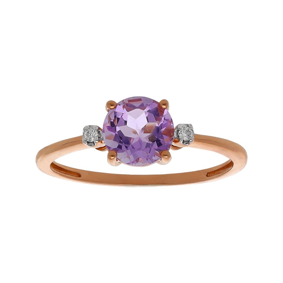 Anillo para dama en oro combinado 14K con amatista y diamante