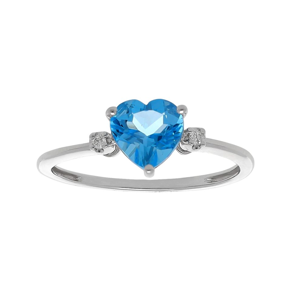 Anillo para dama en oro blanco 14K con topacio y diamante