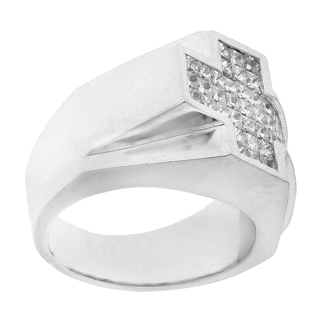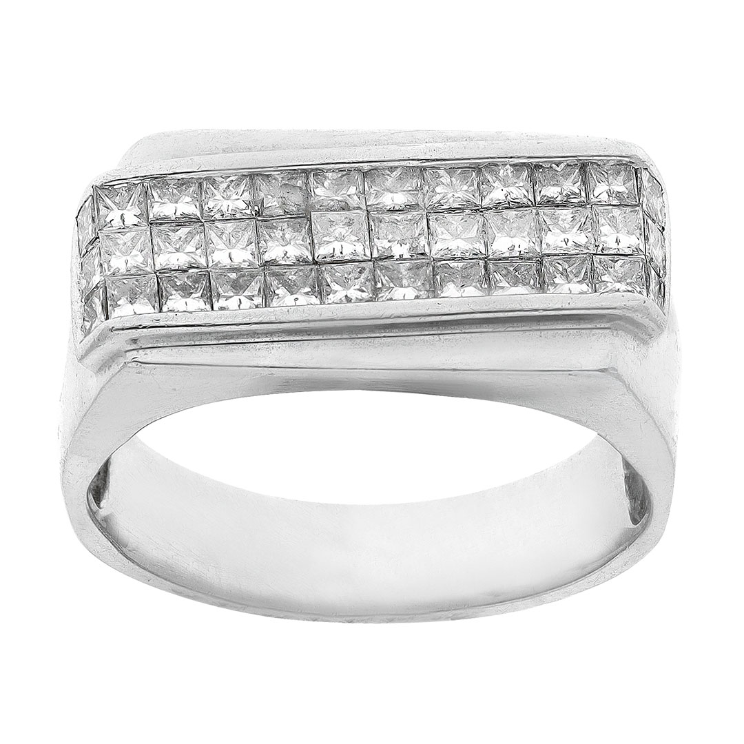 Anillo para caballero en oro blanco 14K con diamante