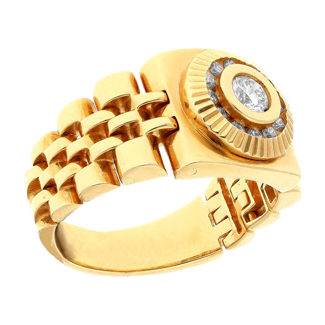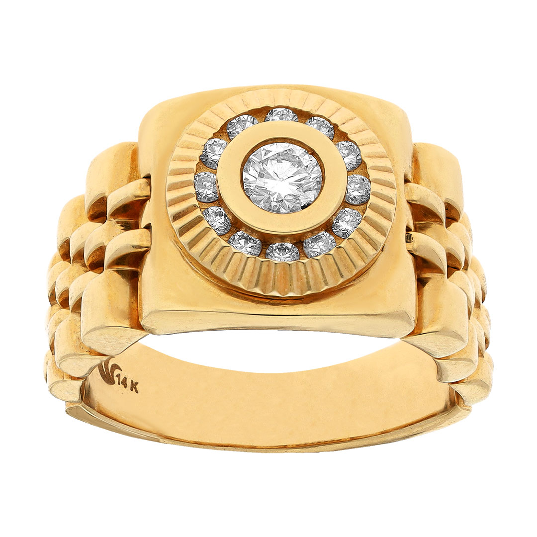Anillo para caballero en oro amarillo 14K con diamante