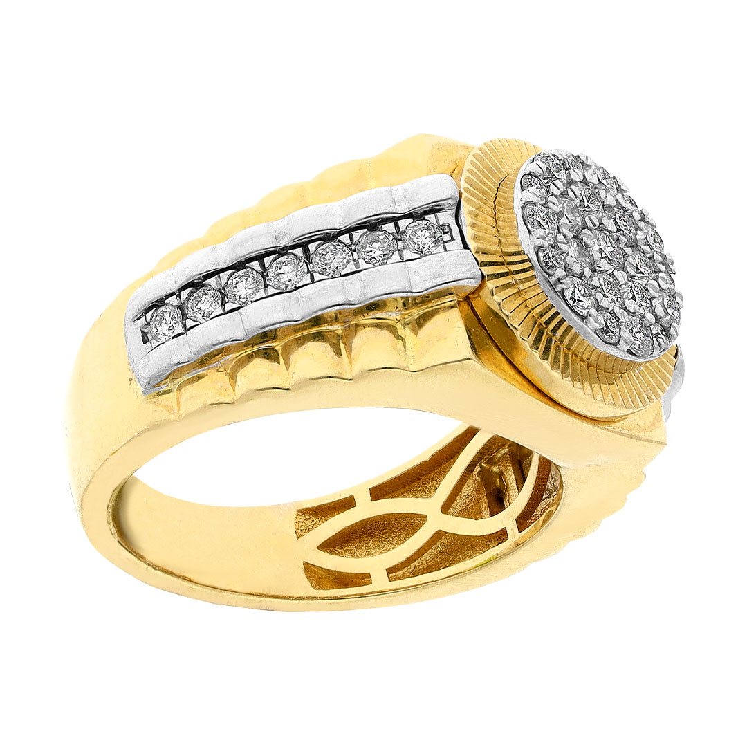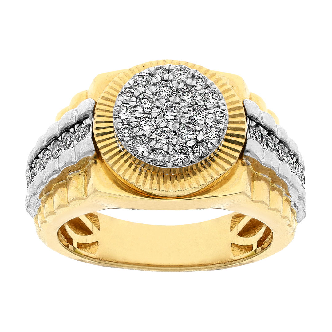Anillo para caballero en oro combinado 14K con diamante