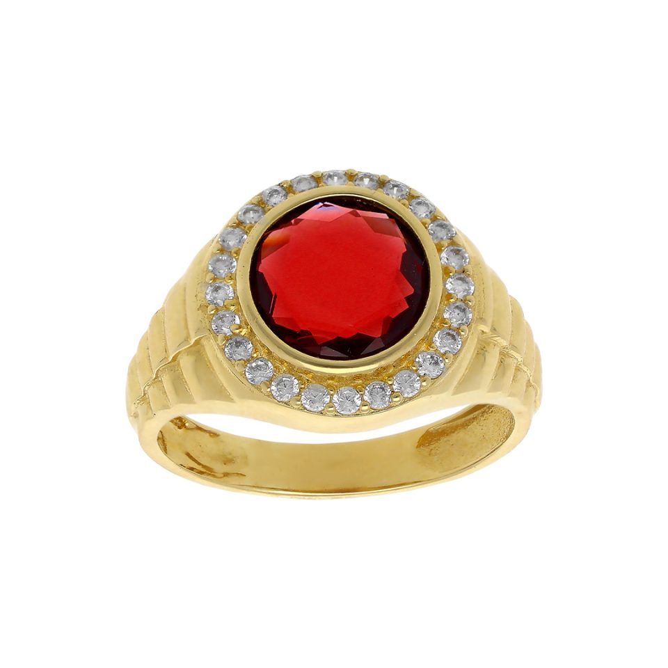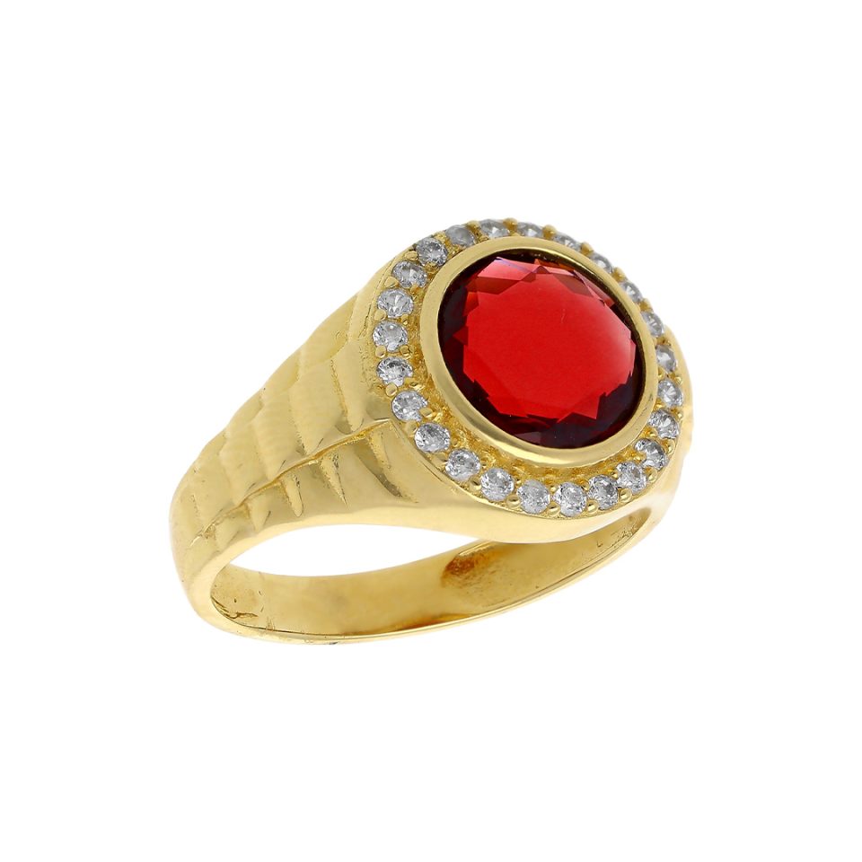 Anillo para caballero en oro blanco 14K con rubí y diamante