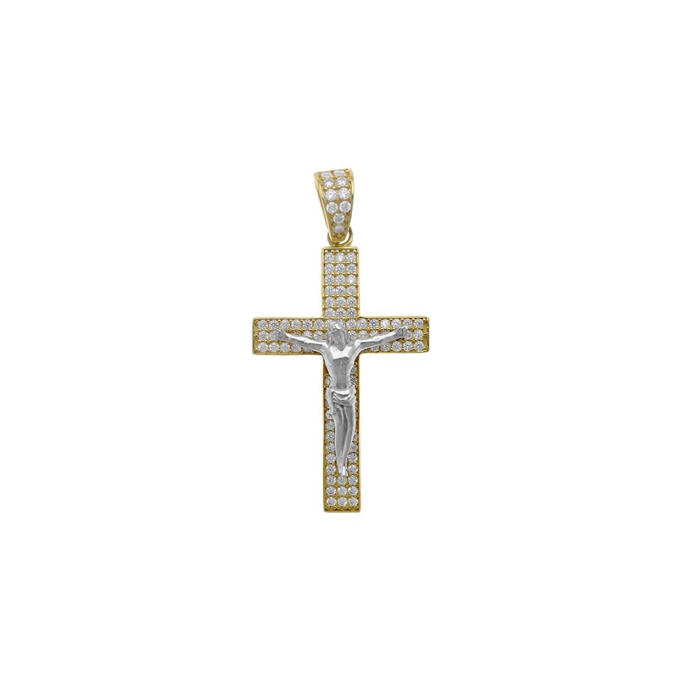 Cruz en oro combinado 10K con zirconia