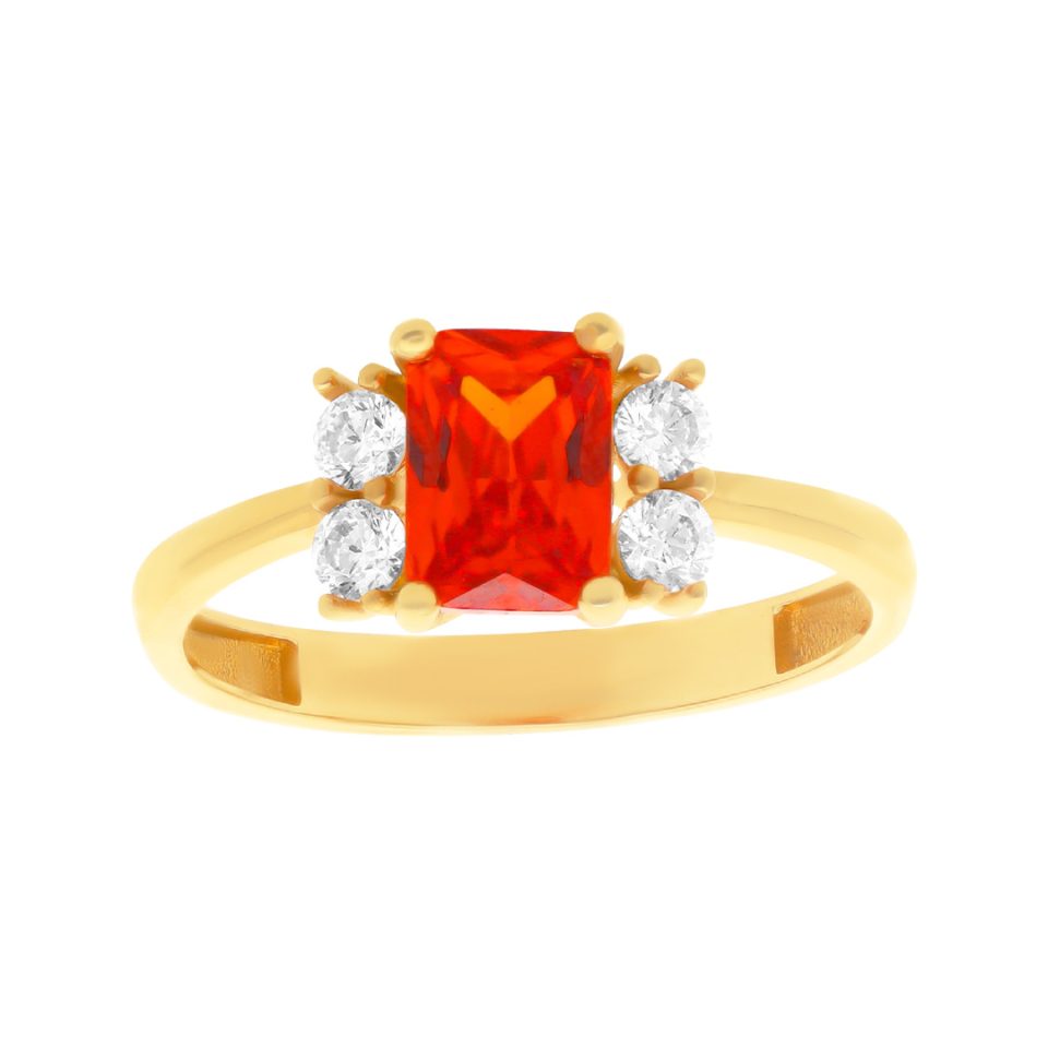 Anillo para dama en oro amarillo 14K con rubí y diamante