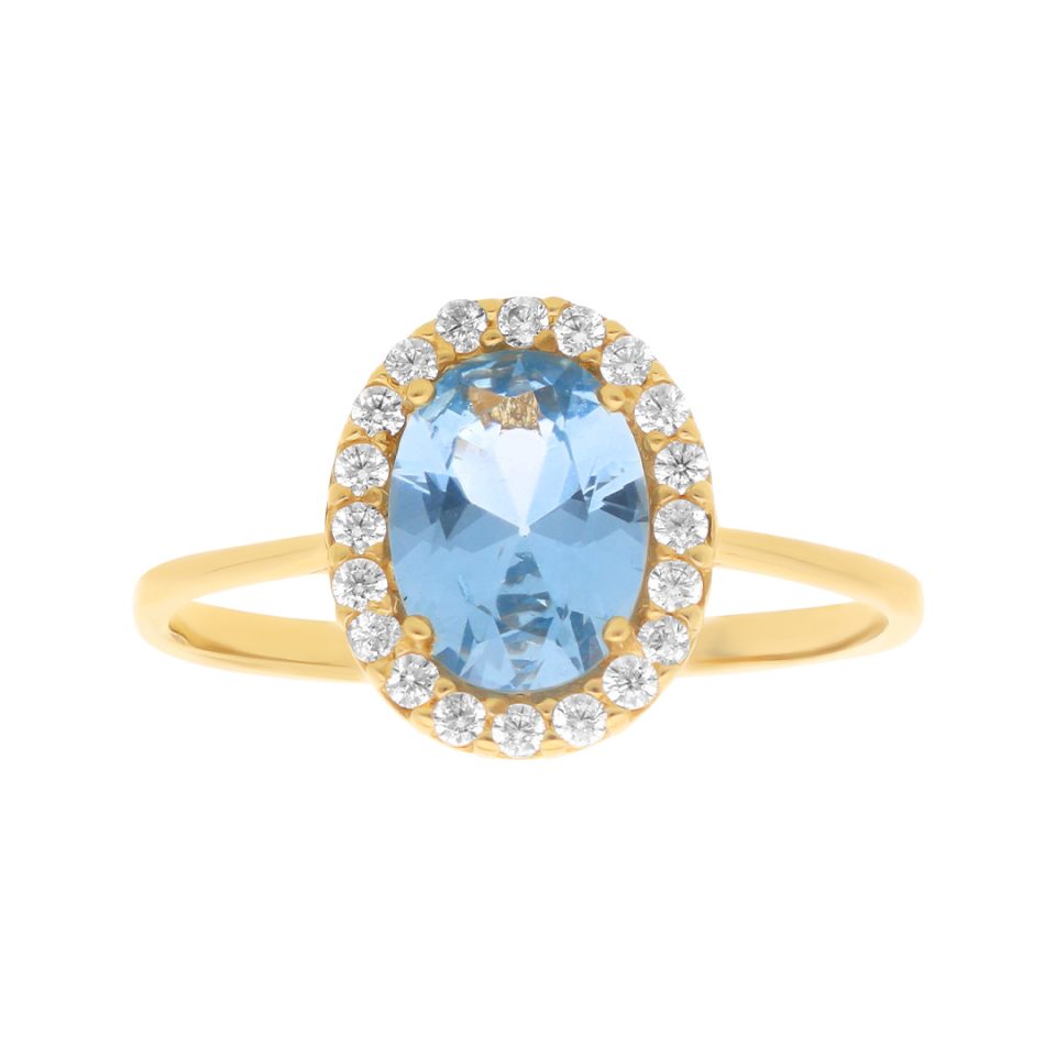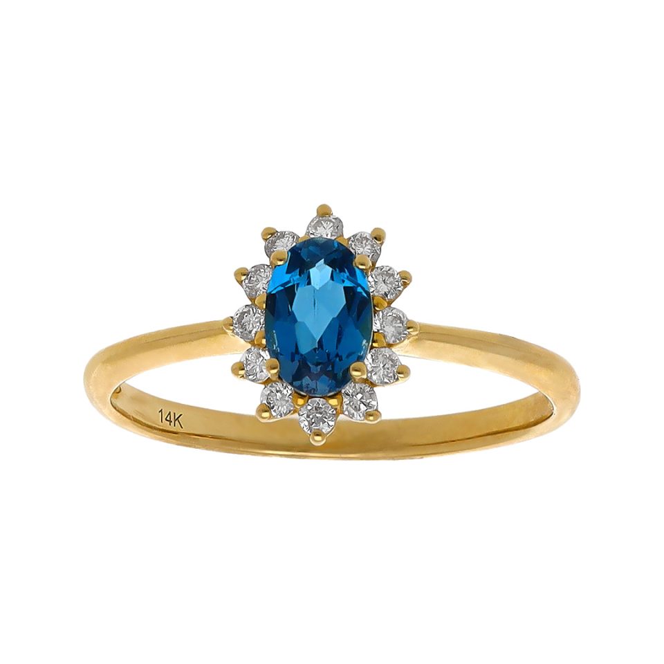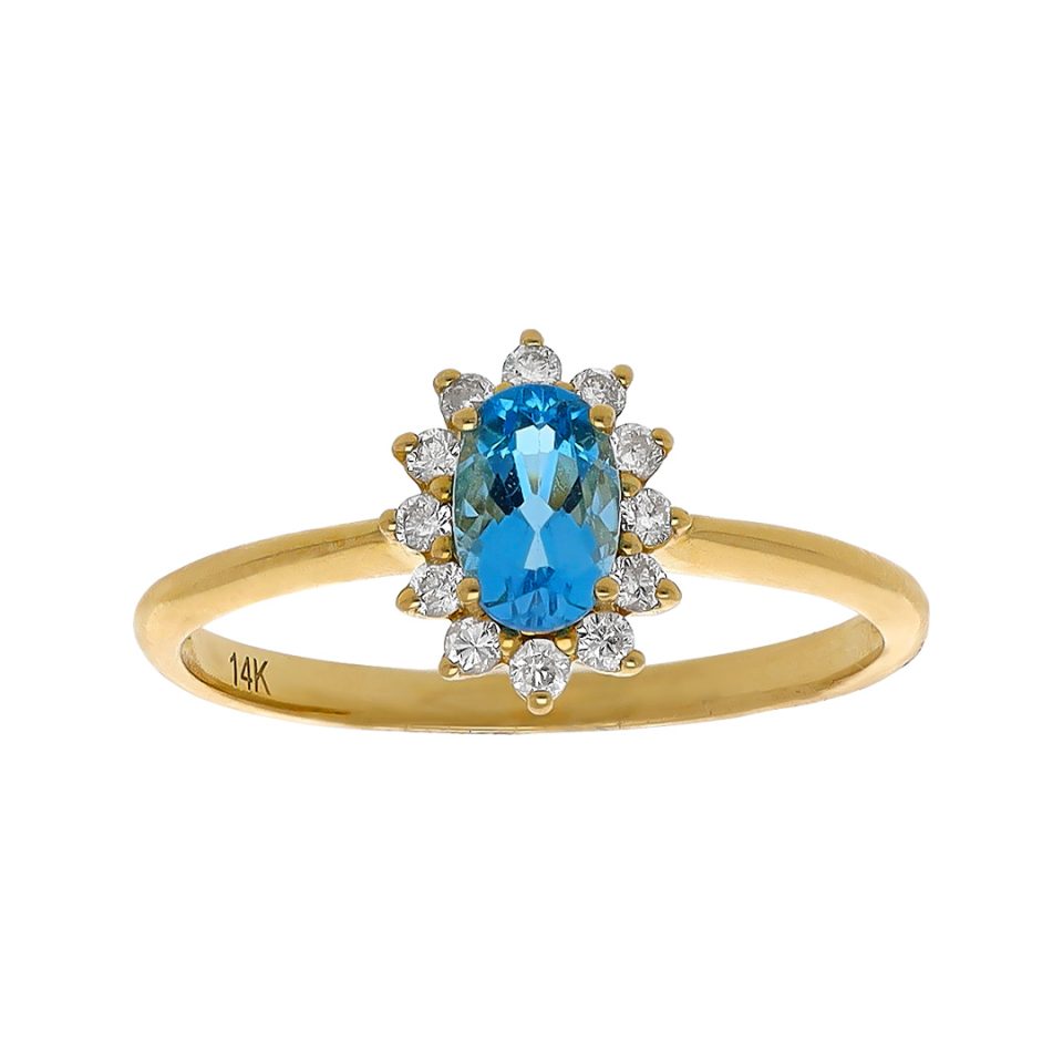 Anillo para dama en oro amarillo 14K con topacio y diamante