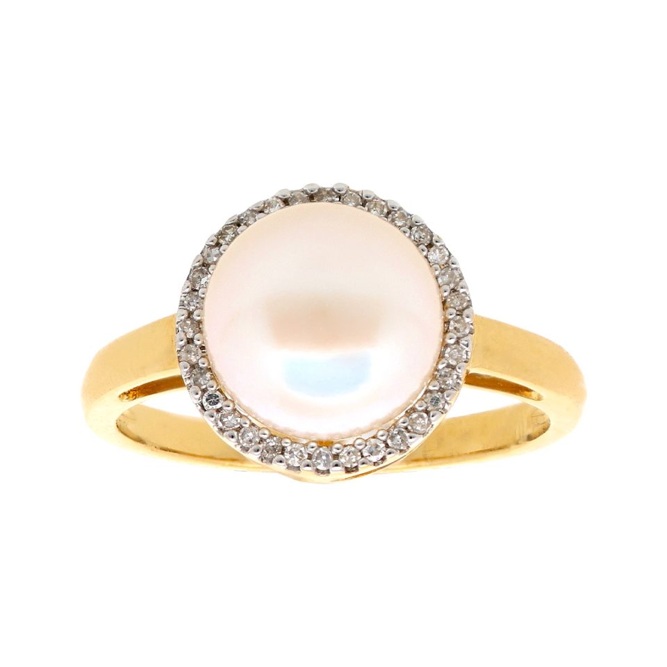 Anillo para dama en oro amarillo 14K con perla y diamante