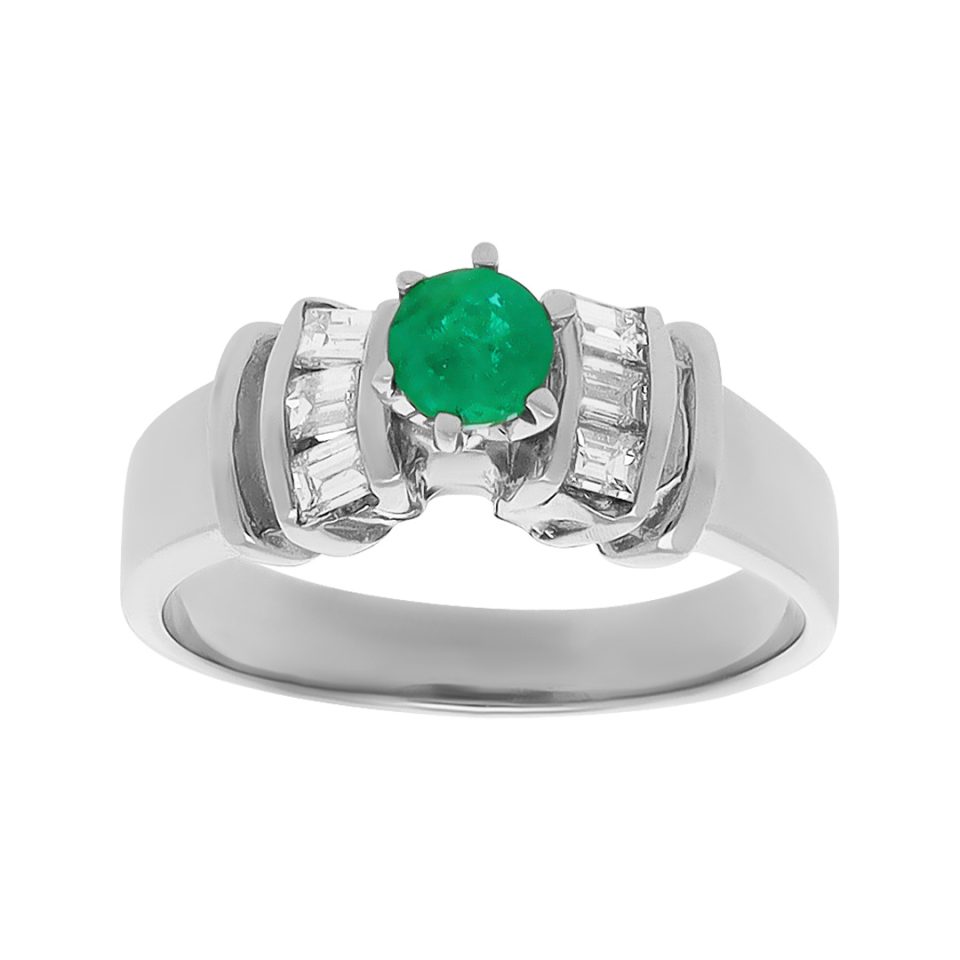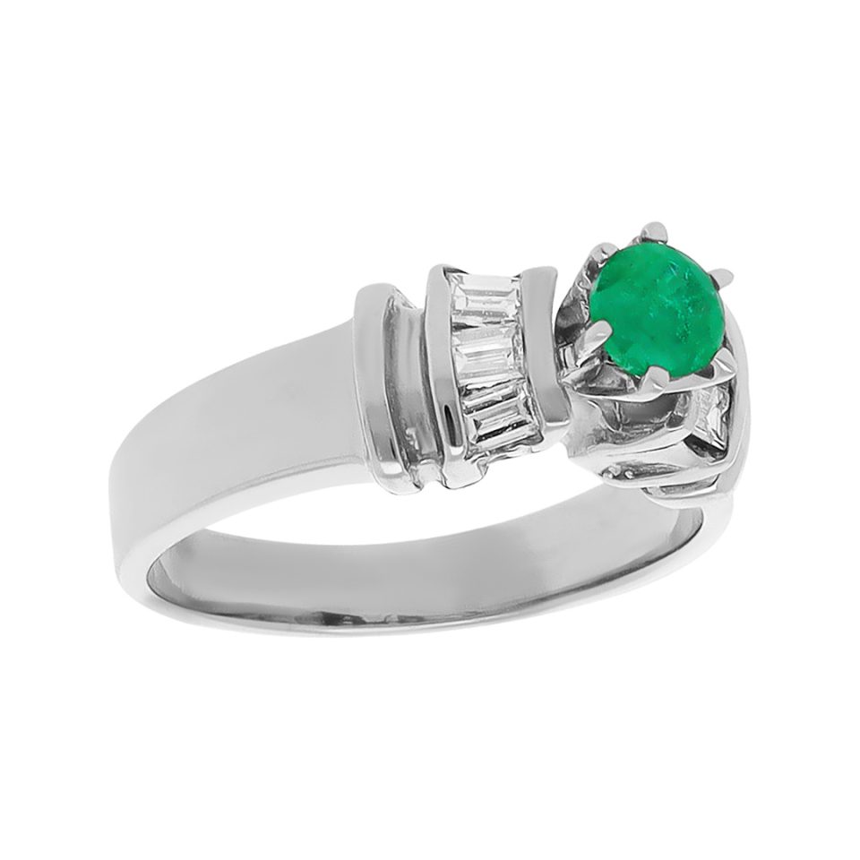 Anillo para dama en oro blanco 14K con esmeralda y diamante