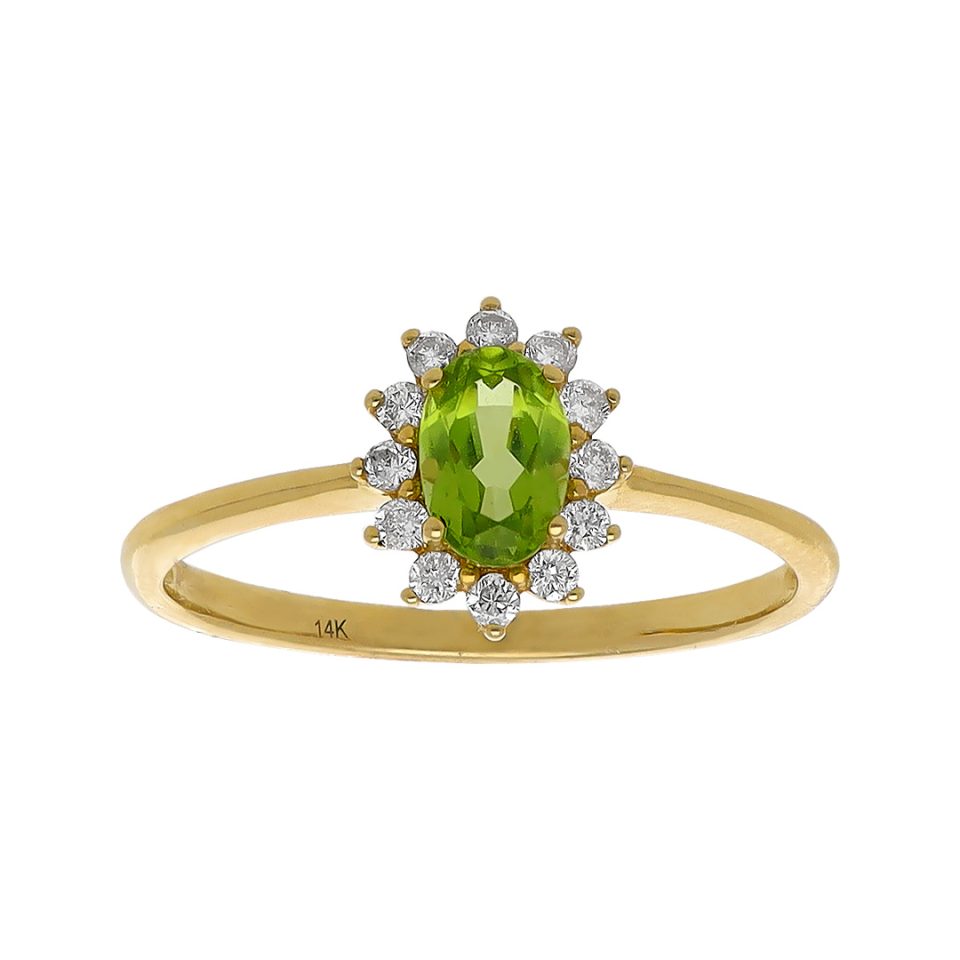 Anillo para dama en oro amarillo 14K con peridoto y diamante