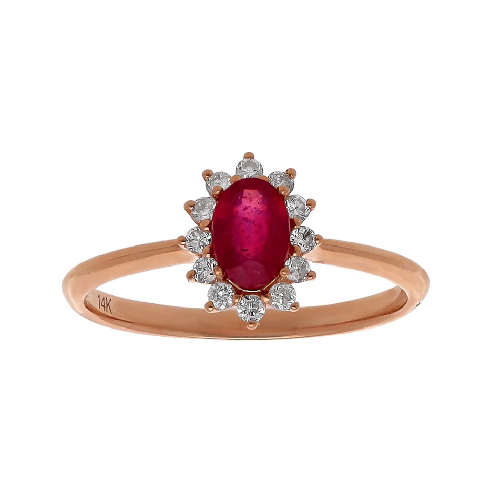 Anillo para dama en oro rosa 14K con rubí y diamante