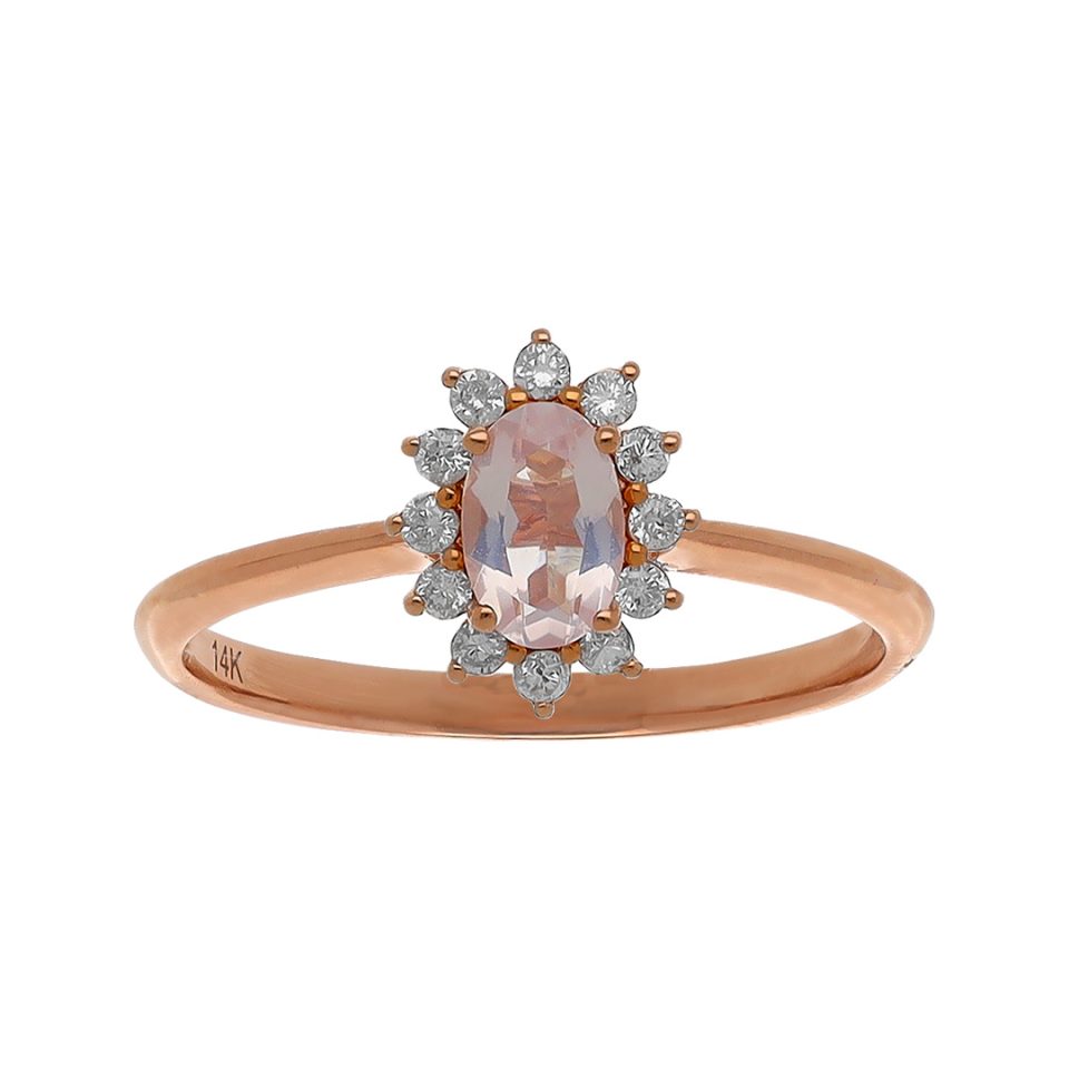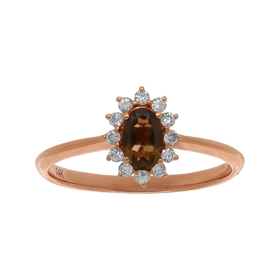 Anillo para dama en oro rosa 14K con cuarzo y diamantes
