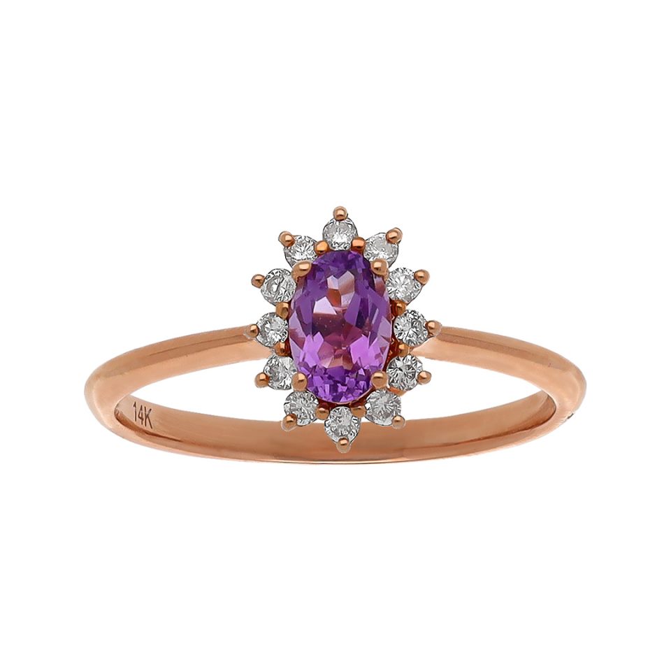 Anillo para dama en oro rosa 14K con amatista y diamante