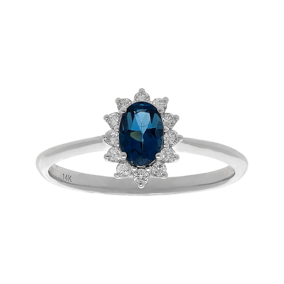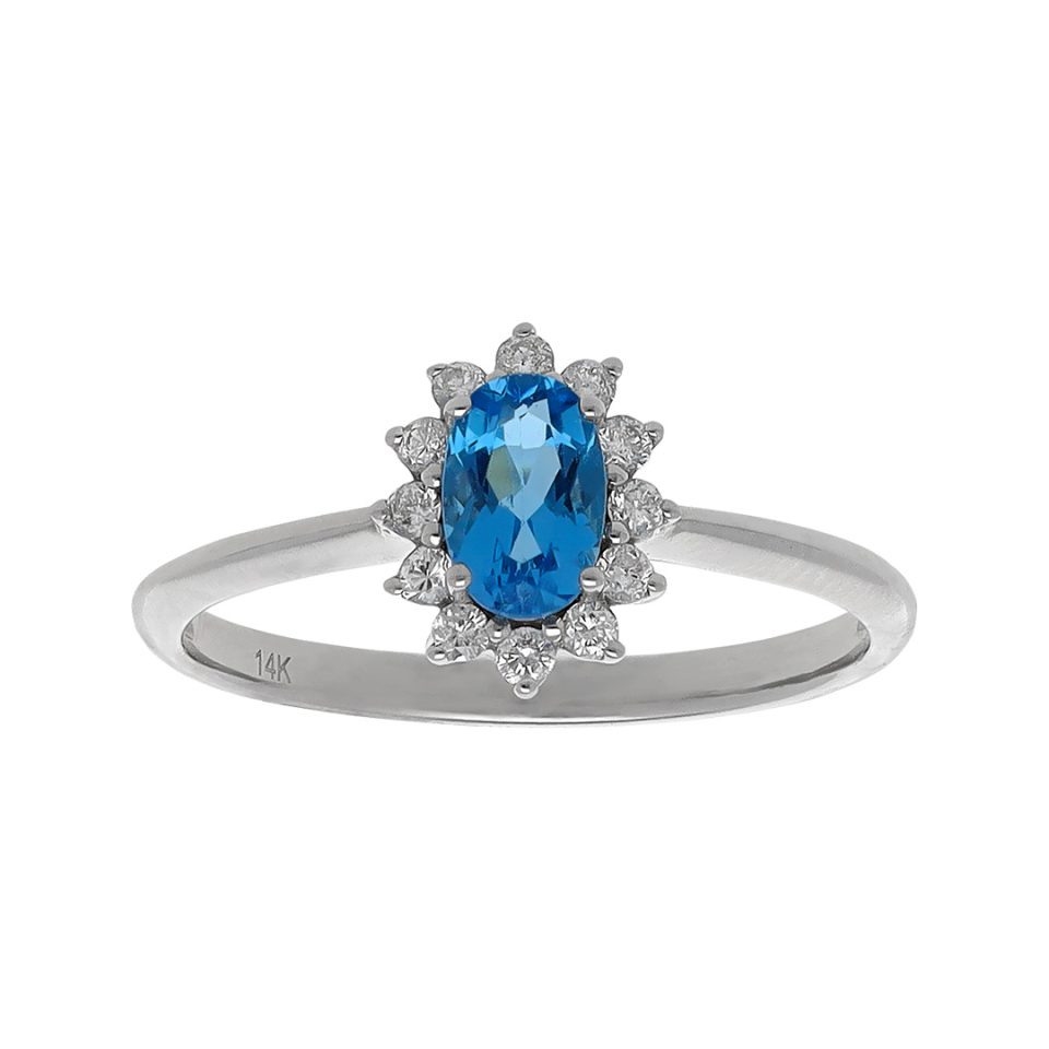 Anillo para dama en oro blanco 14K con topacio y diamante
