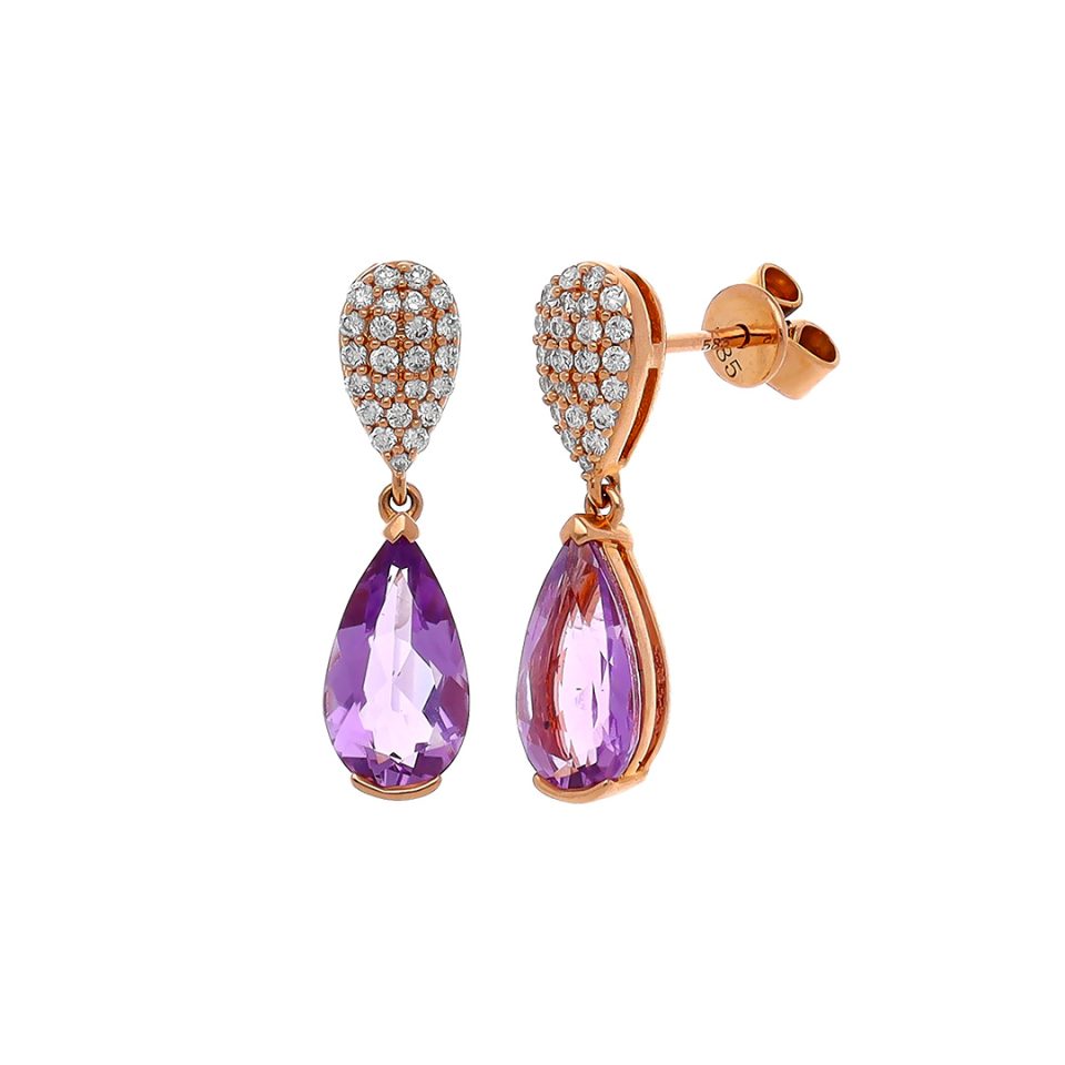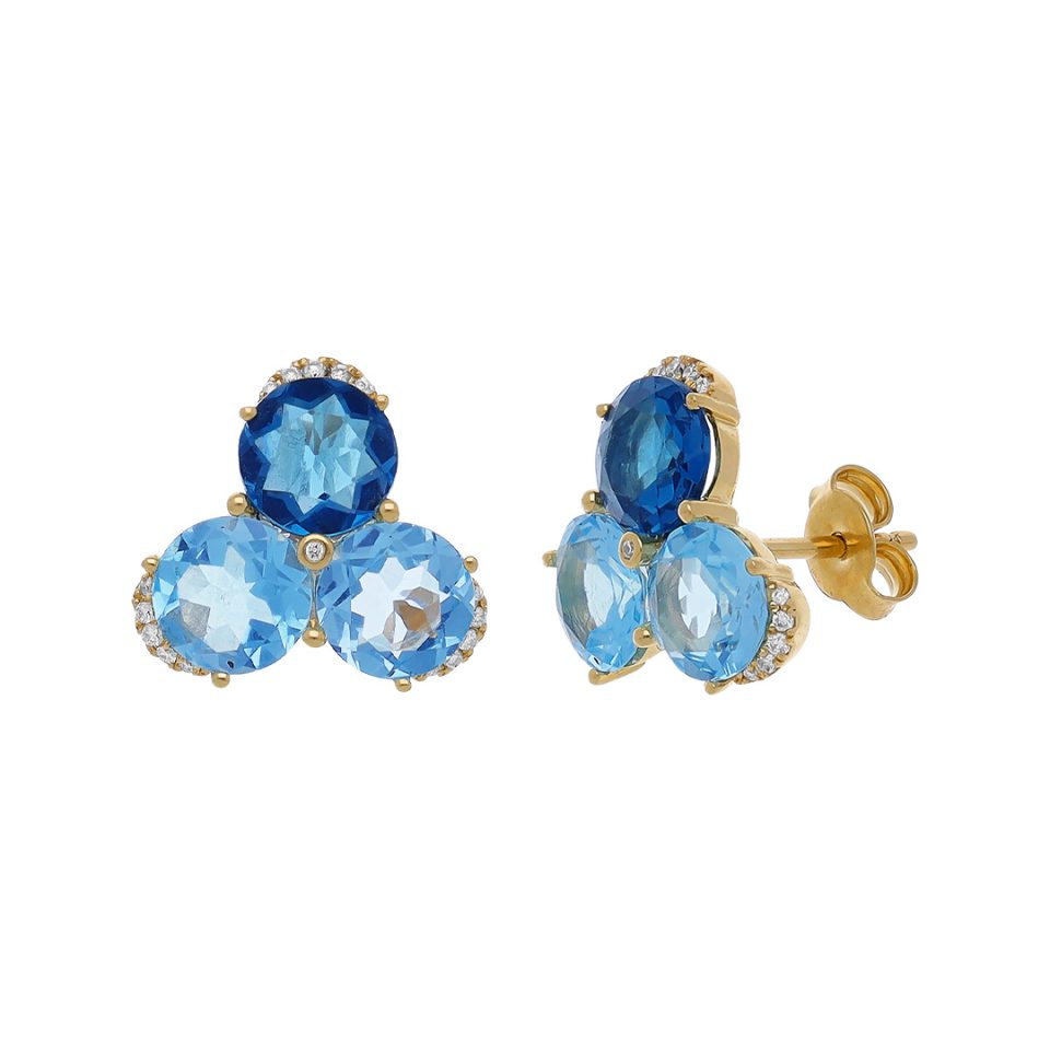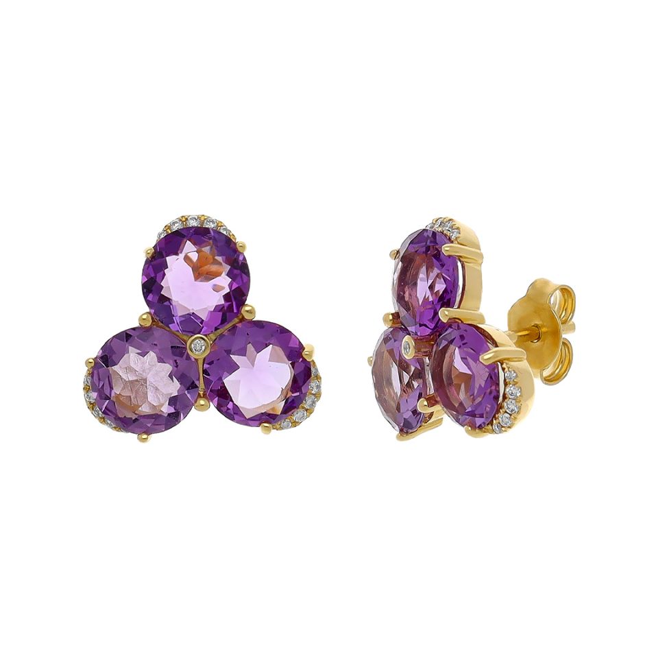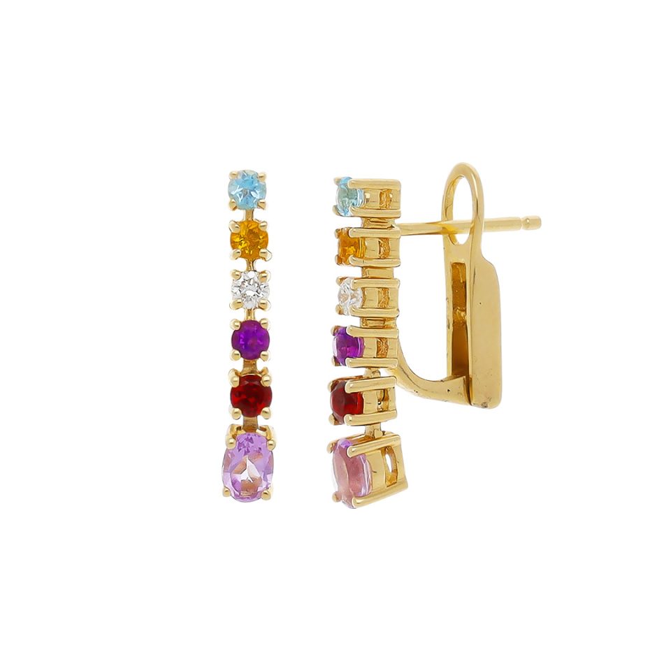 Aretes en oro amarillo 14K con amatista, granate y citrino