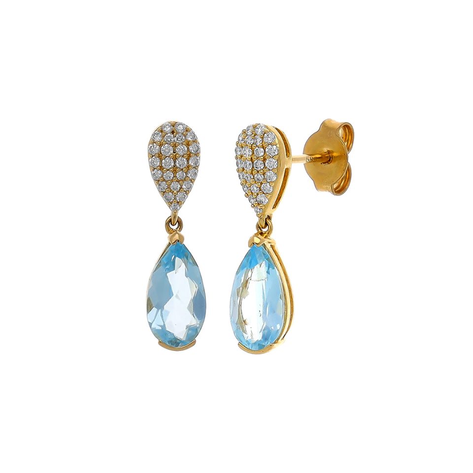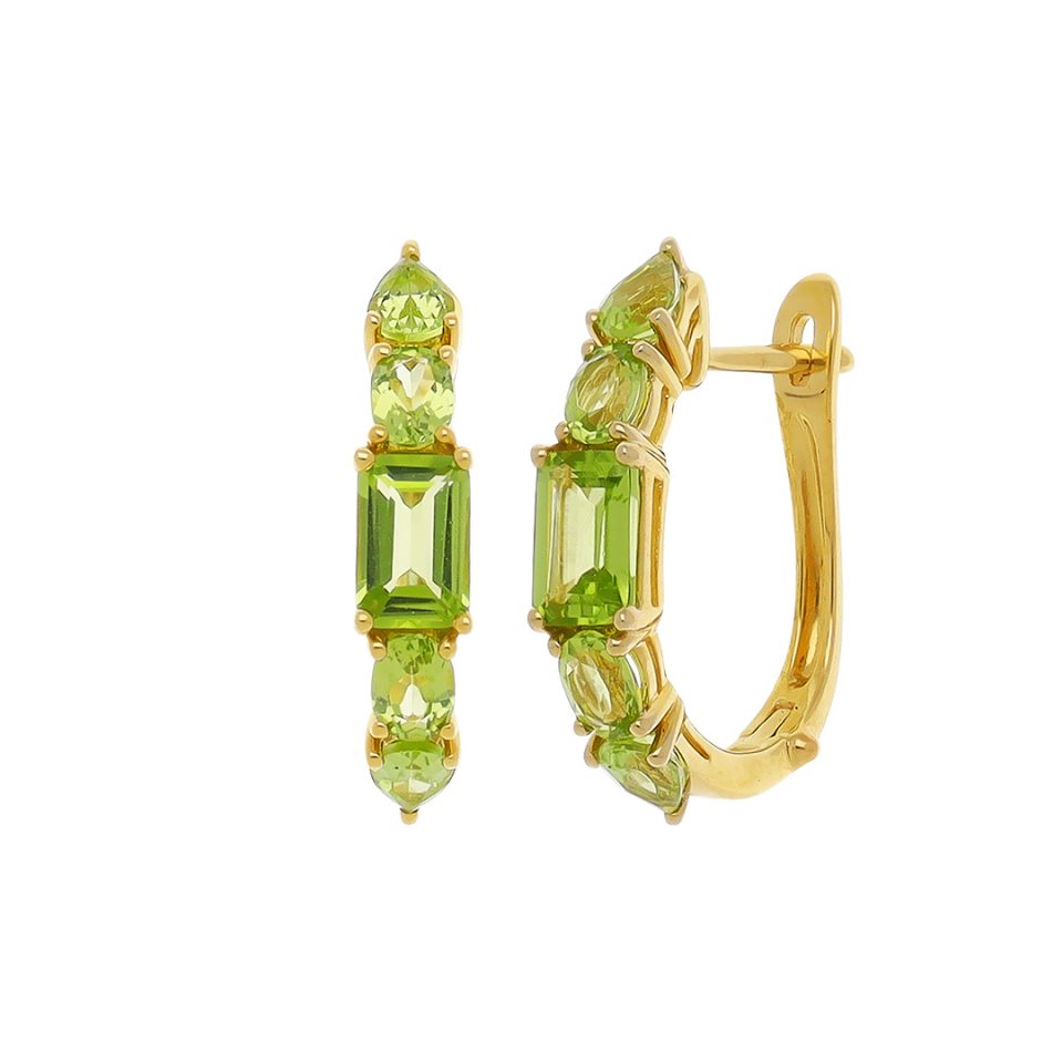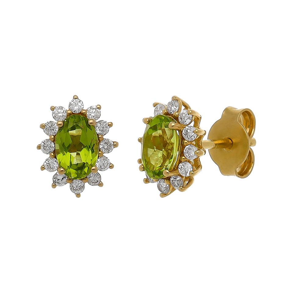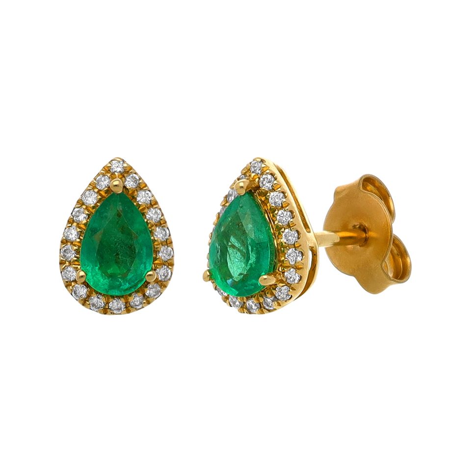 Aretes en oro amarillo 14K con esmeralda y diamante