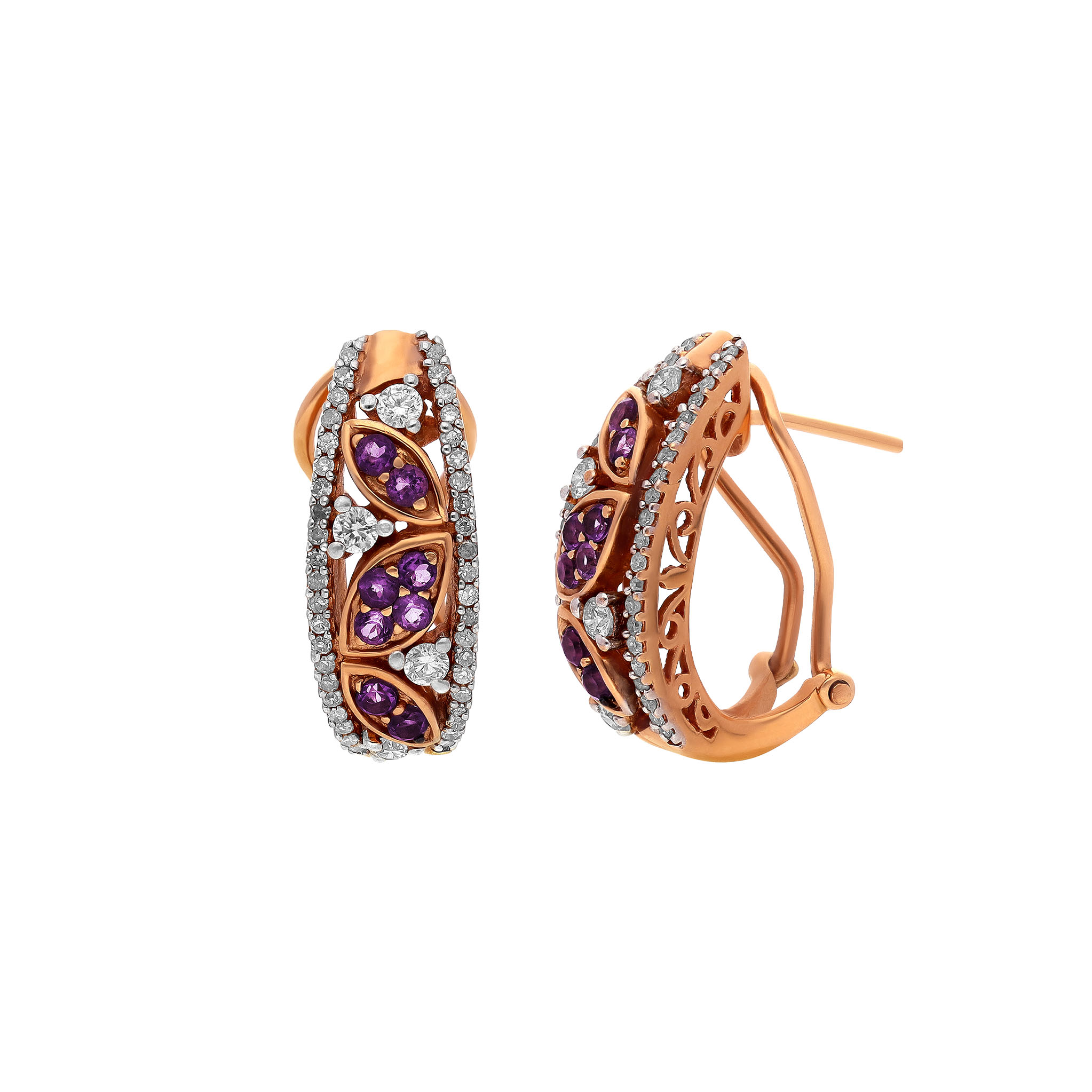 Aretes en oro rosa 14K con amatista y diamante