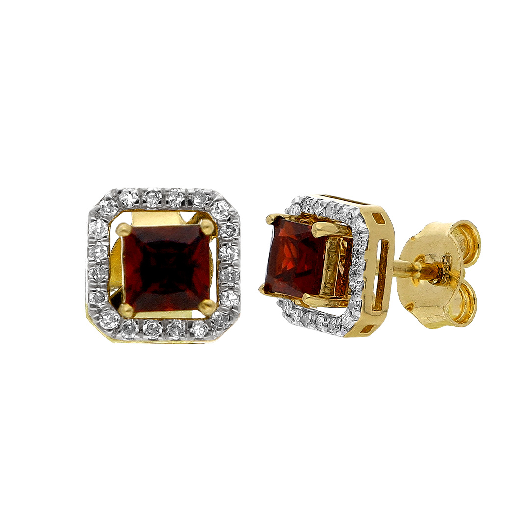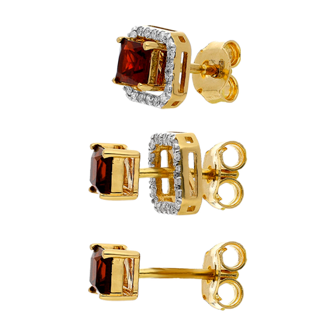 Aretes en oro blanco 14K con granate y diamante