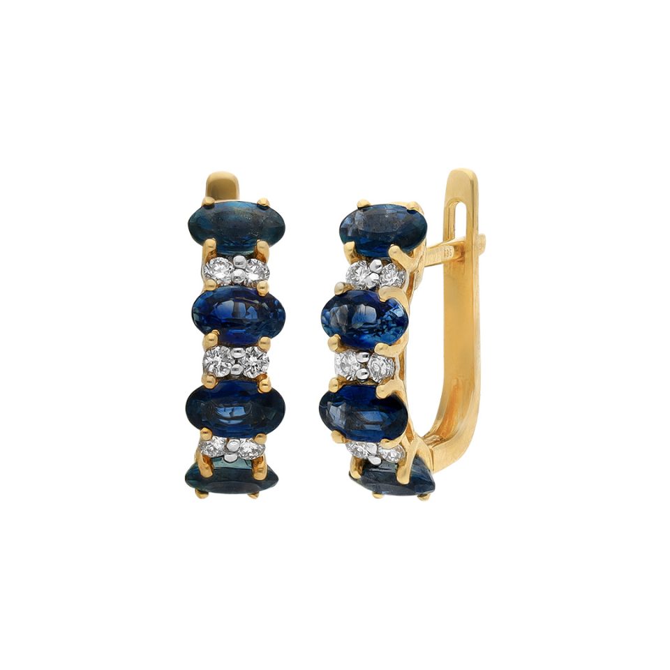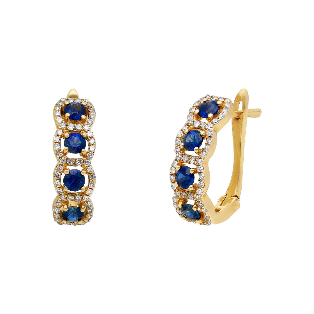 Aretes en oro amarillo 14K con zafiro y diamante