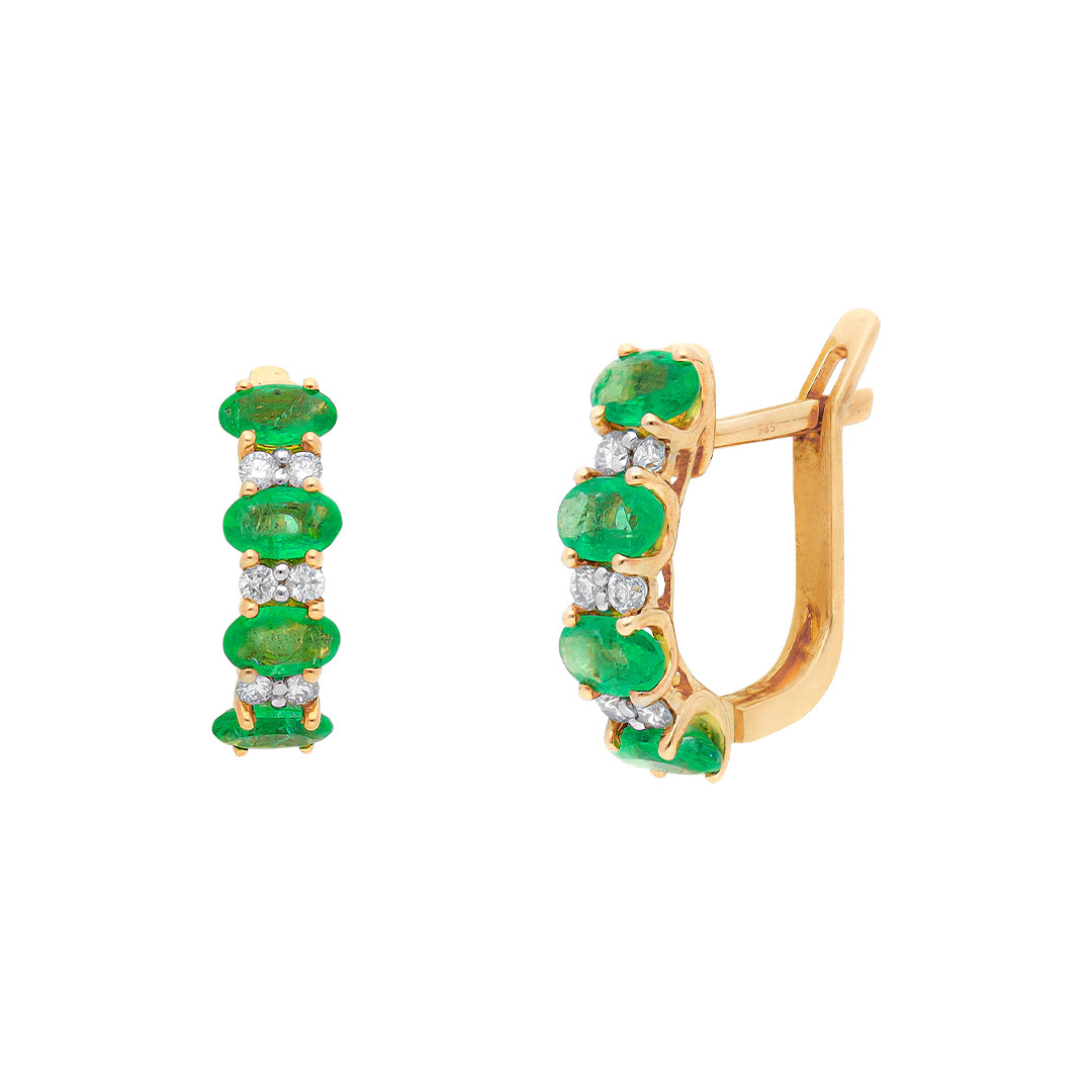 Aretes en oro amarillo 14K con esmeralda y diamante