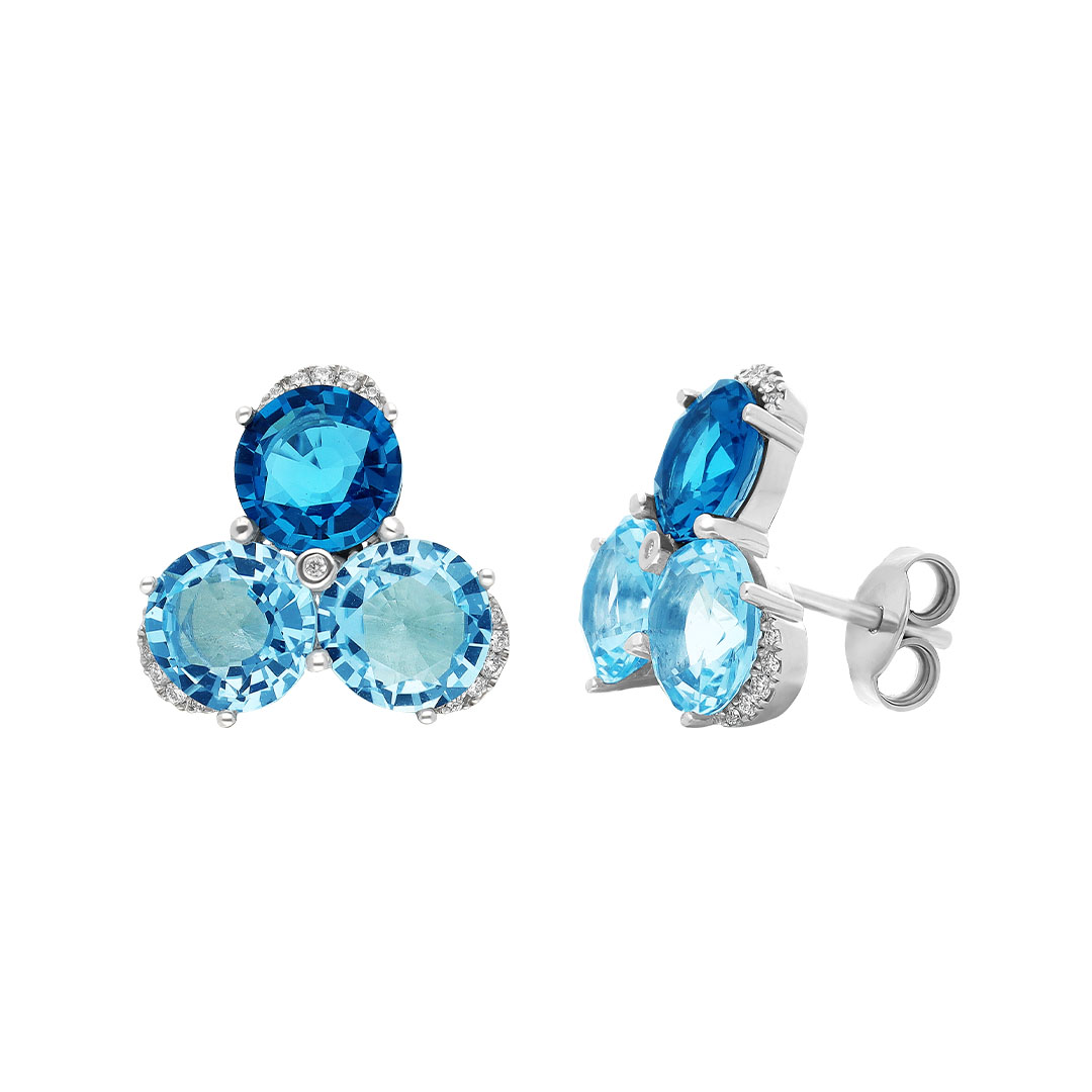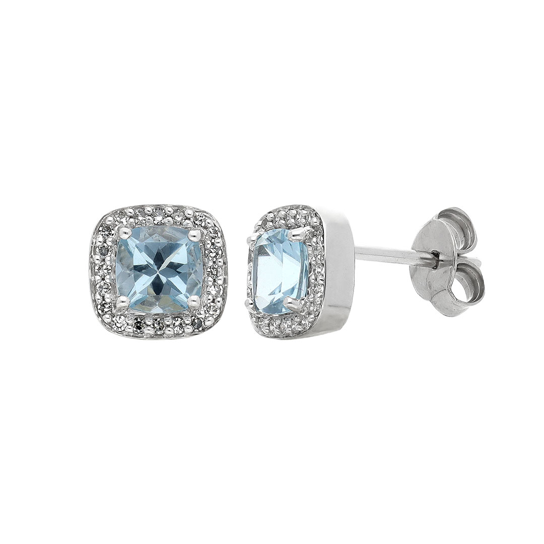 Aretes en oro blanco 14K con topacio y diamante