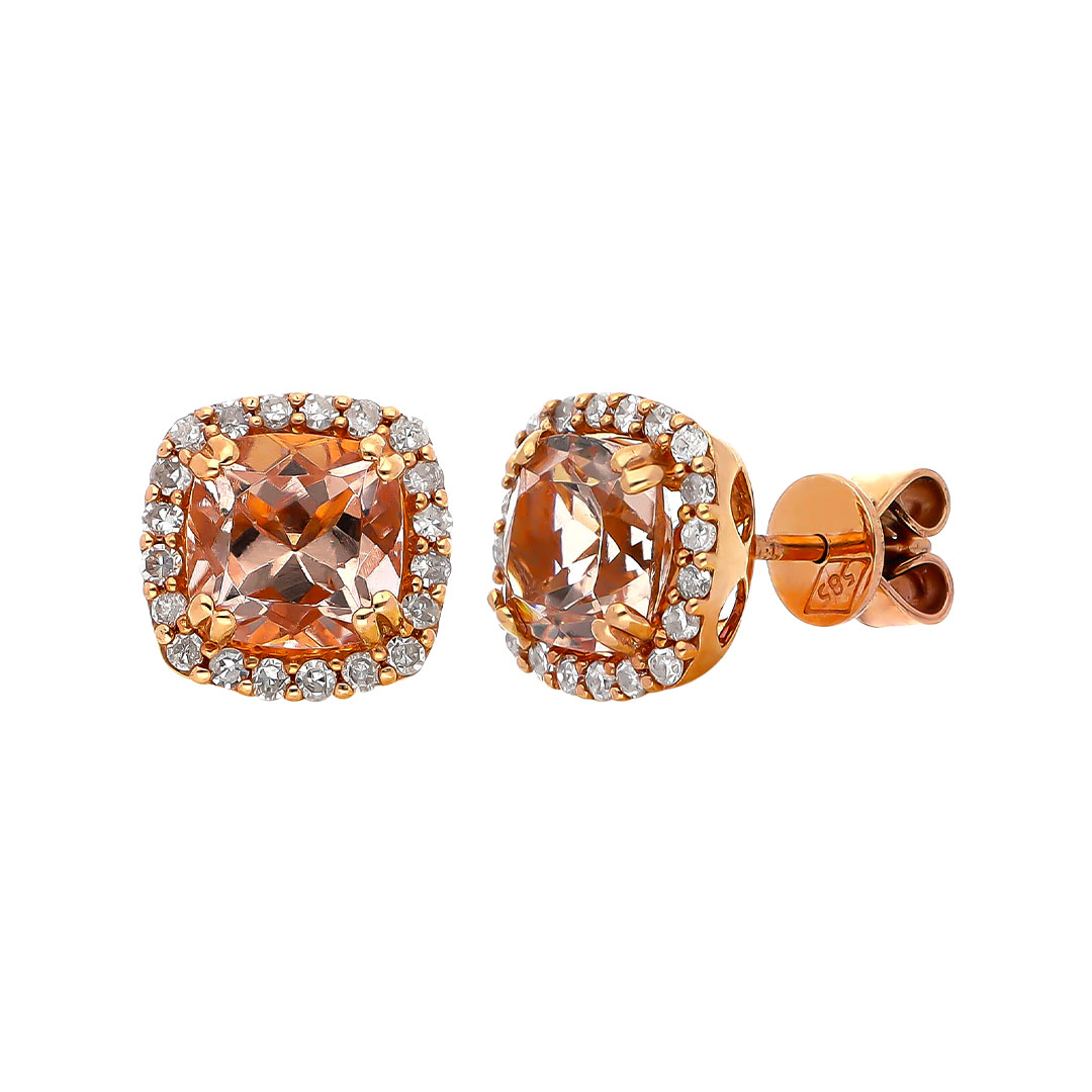 Aretes en oro rosa 14K con morganita y diamante