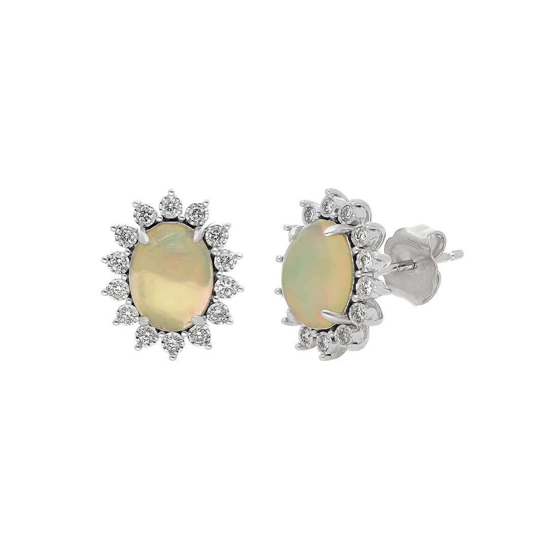 Aretes en oro blanco 14K con ópalo y diamante