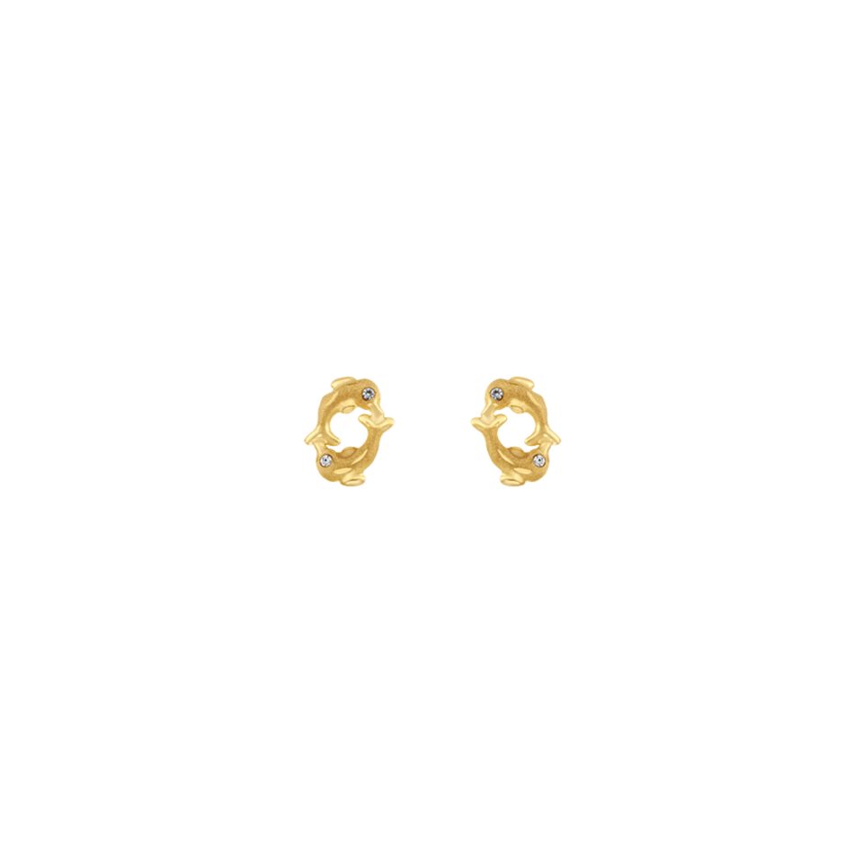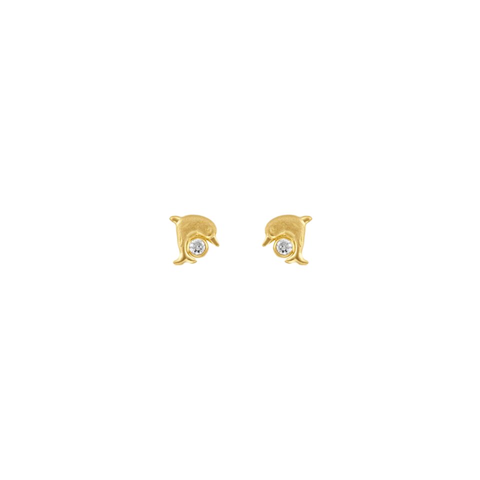 Broquel de delfín en oro amarillo 10K con zirconia