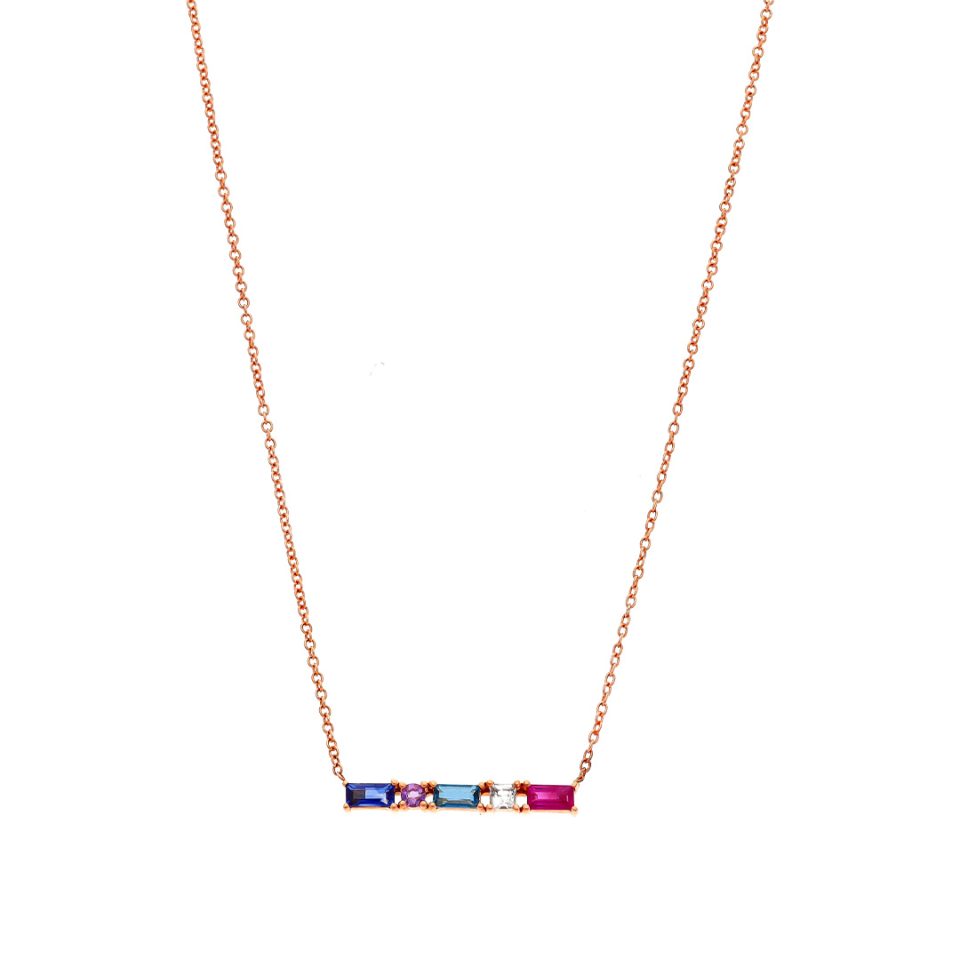 Gargantilla en oro blanco 14K con diamante y zafiro