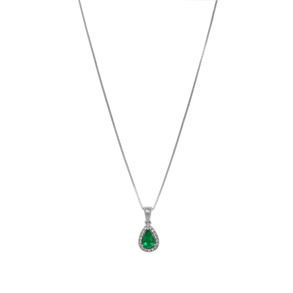 Gargantilla en oro blanco 14K con esmeralda y diamante