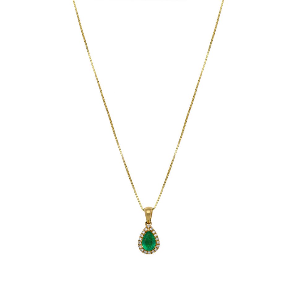Gargantilla en oro amarillo 14K con esmeralda y diamante