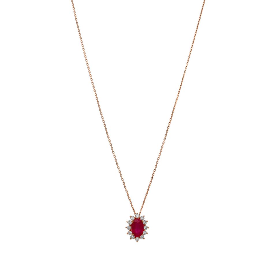 Gargantilla en oro rosa 14K con zafiro, esmeralda, rubí y diamante