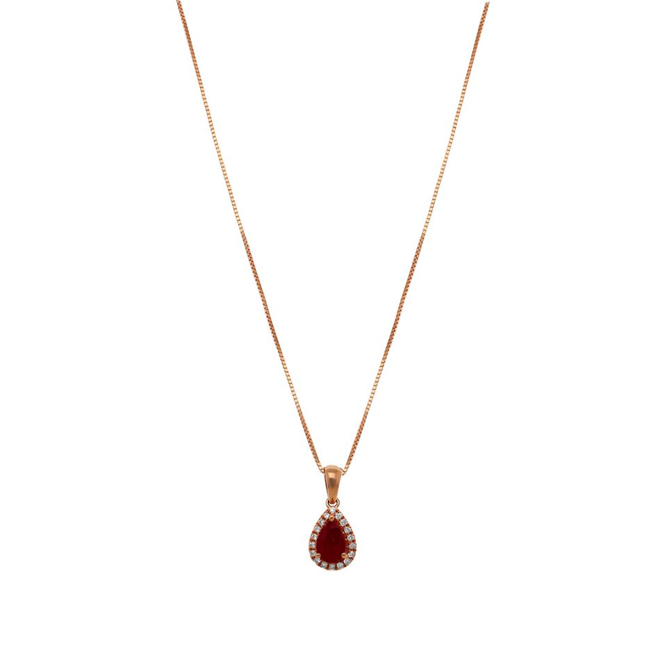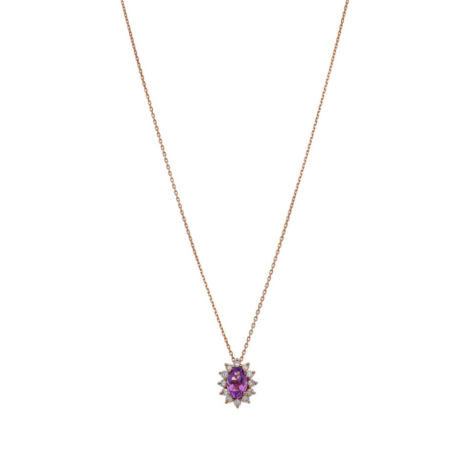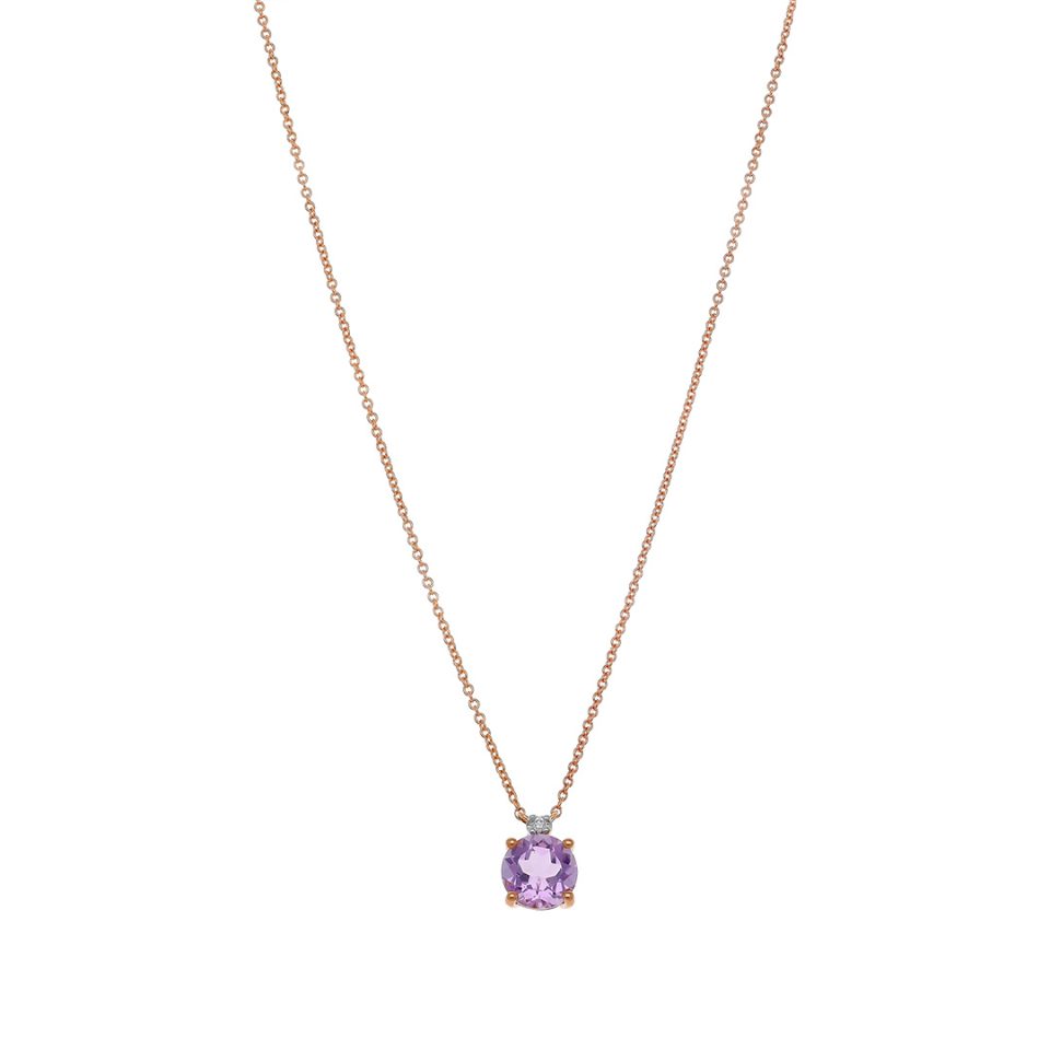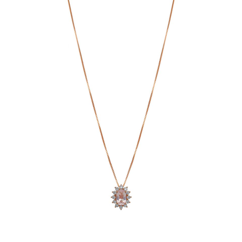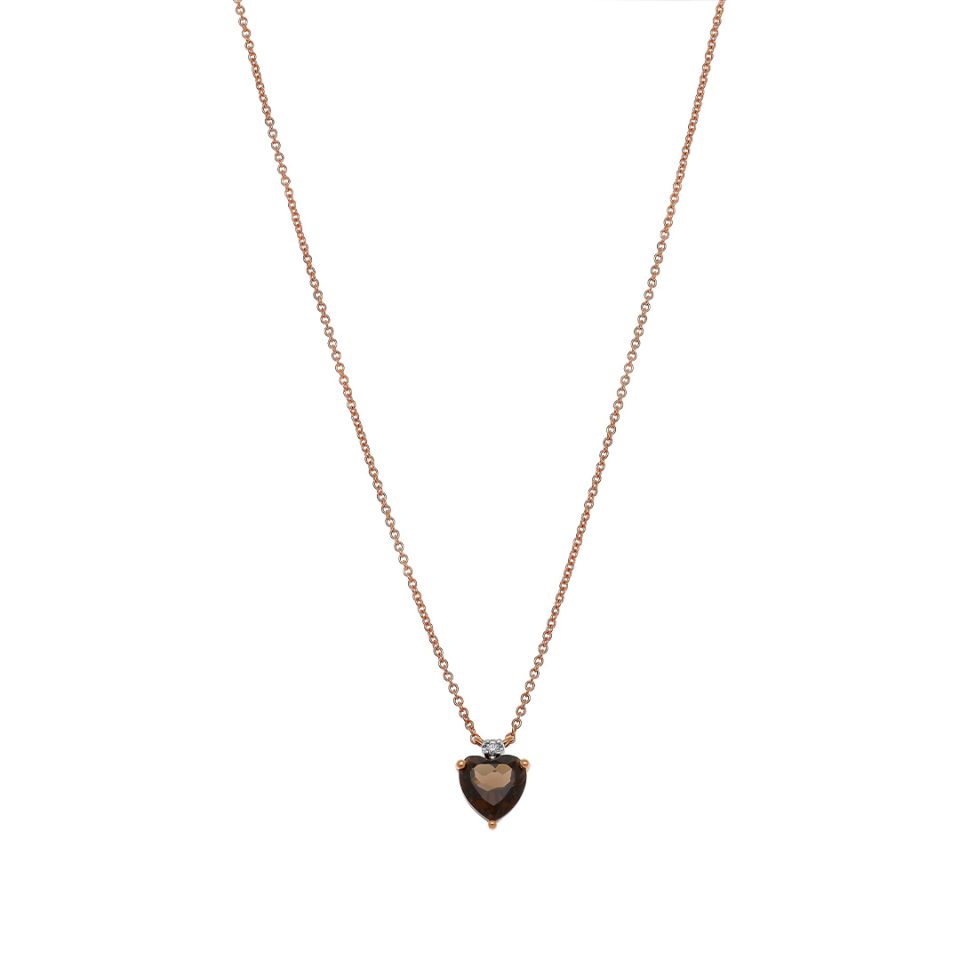 Gargantilla en oro rosa 14K con cuarzo y diamante