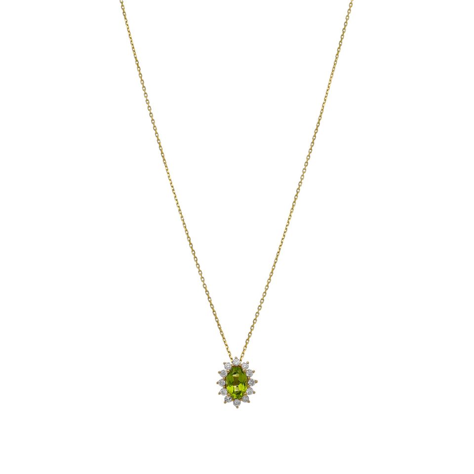 Gargantilla en oro amarillo 14K con peridoro y diamante