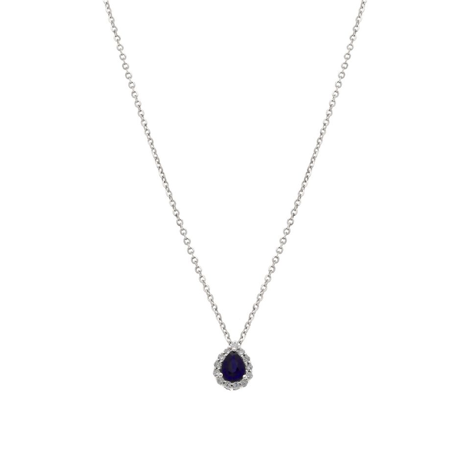 Gargantilla en oro blanco 14K con zafiro y diamante