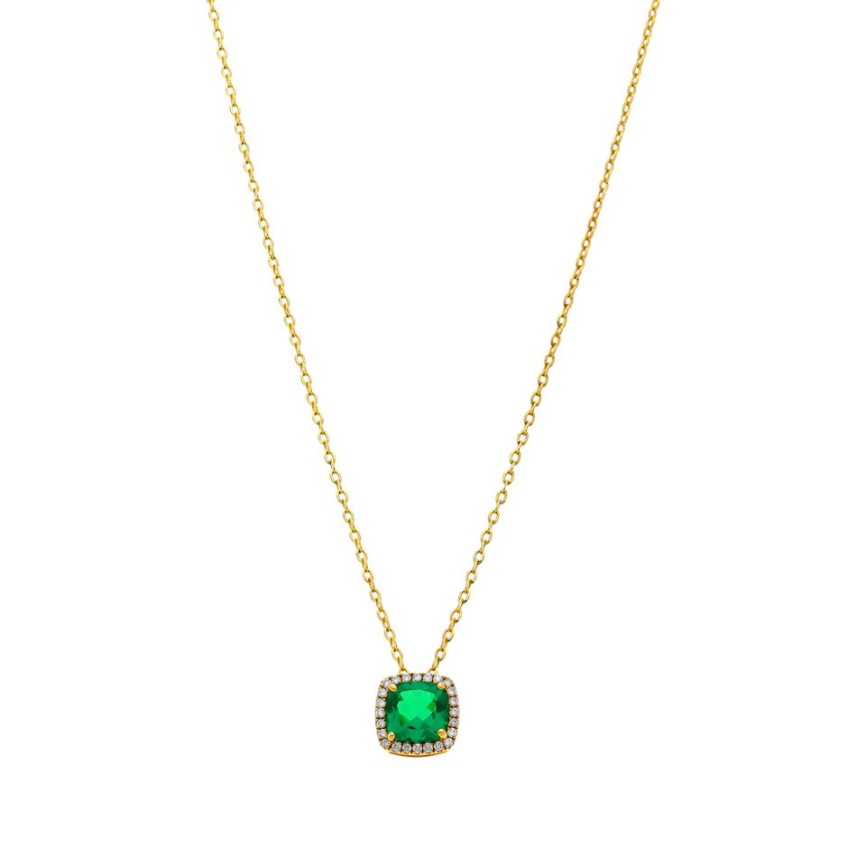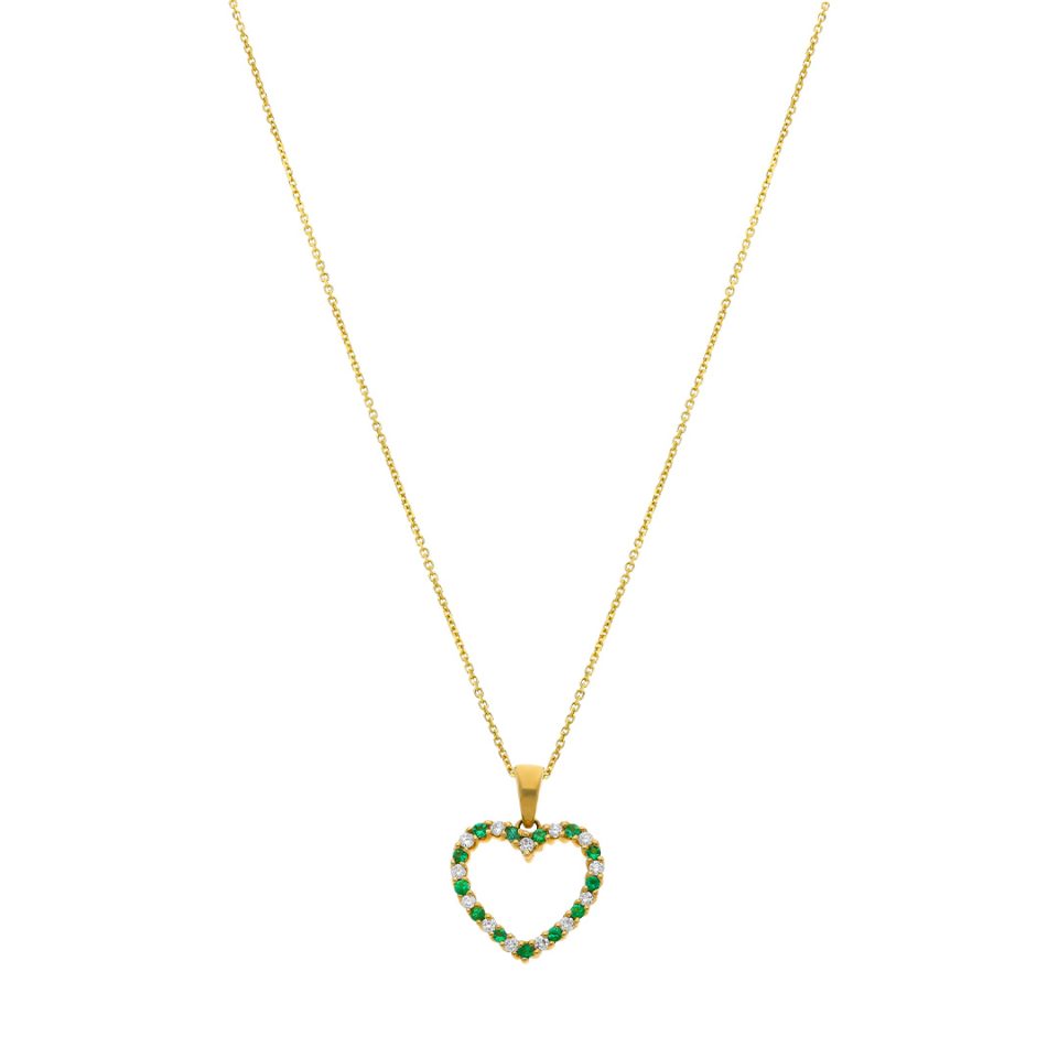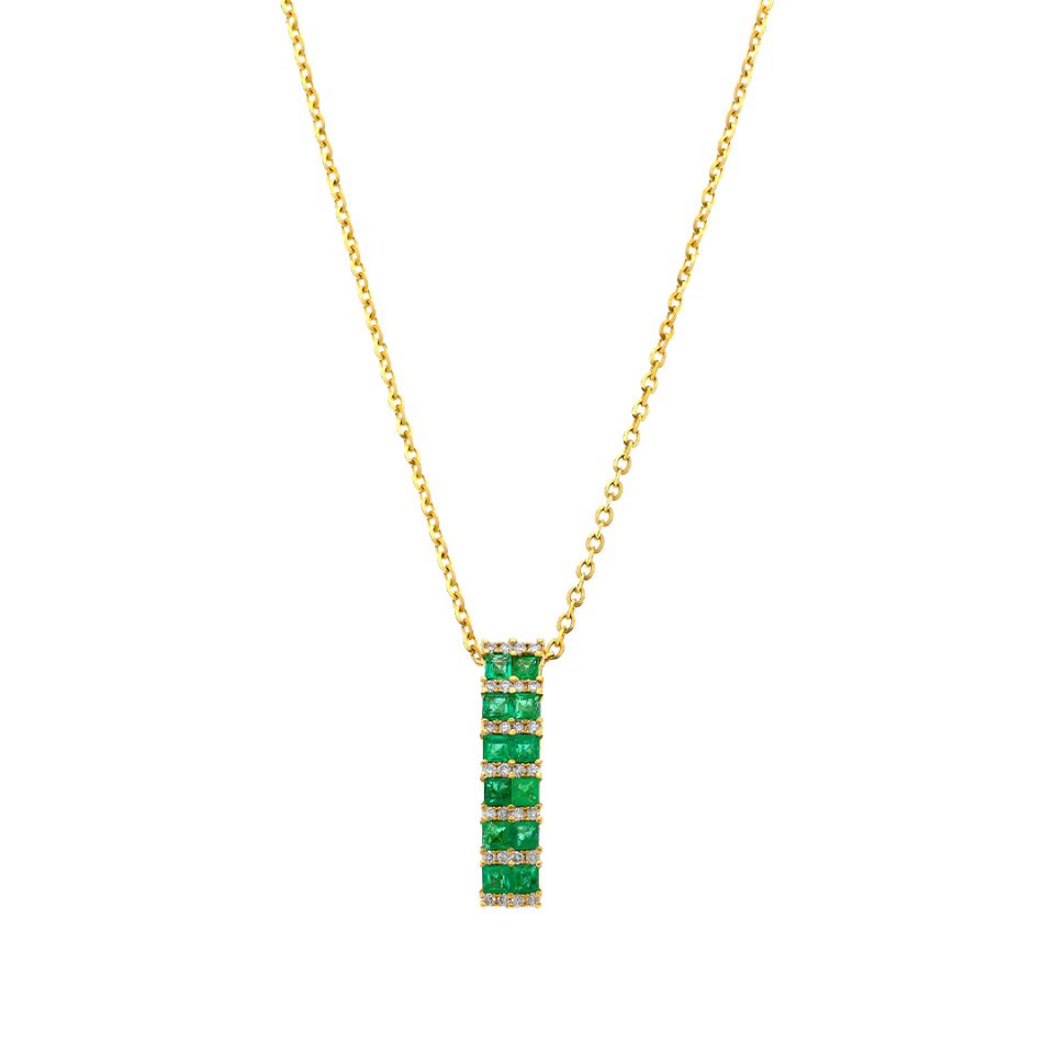 Gargantilla en oro amarillo 14K con esmeralda y diamante