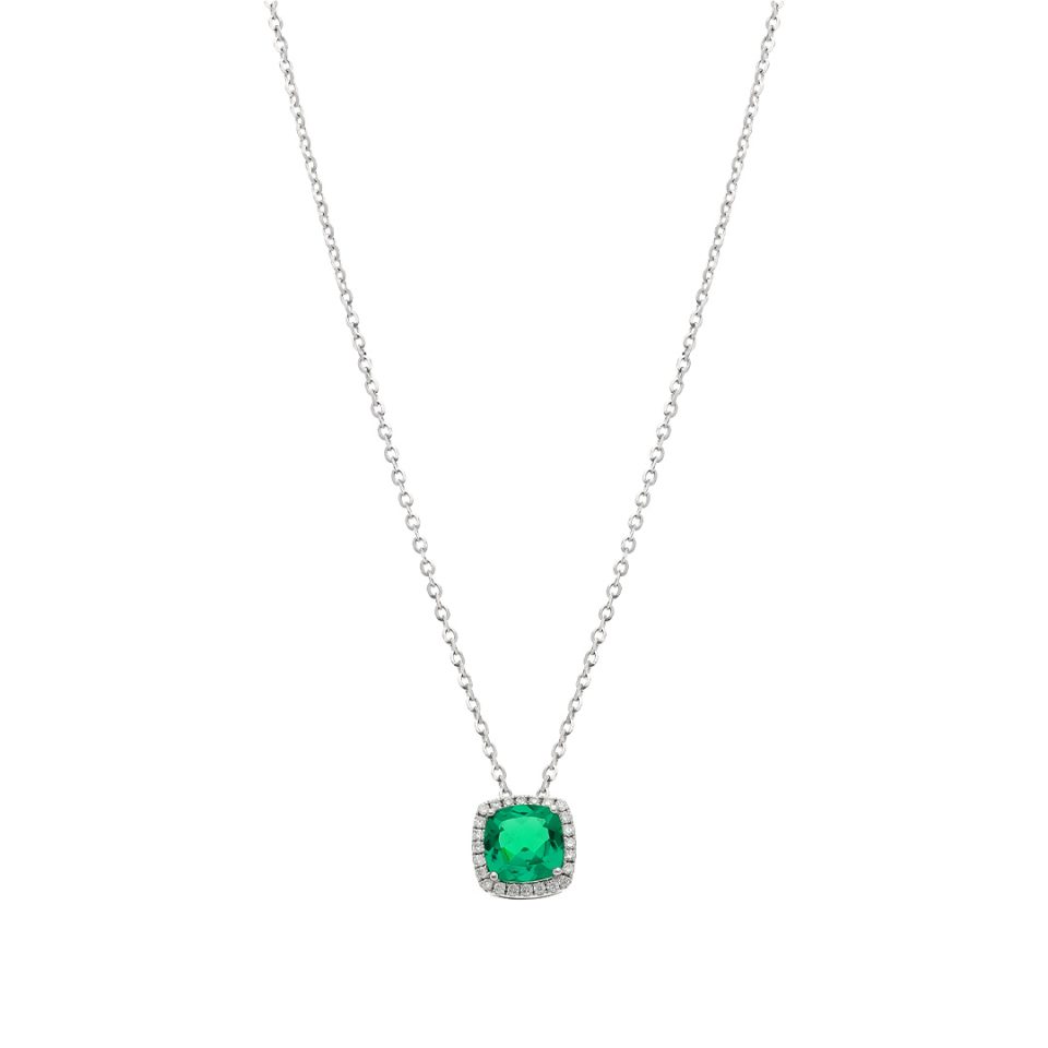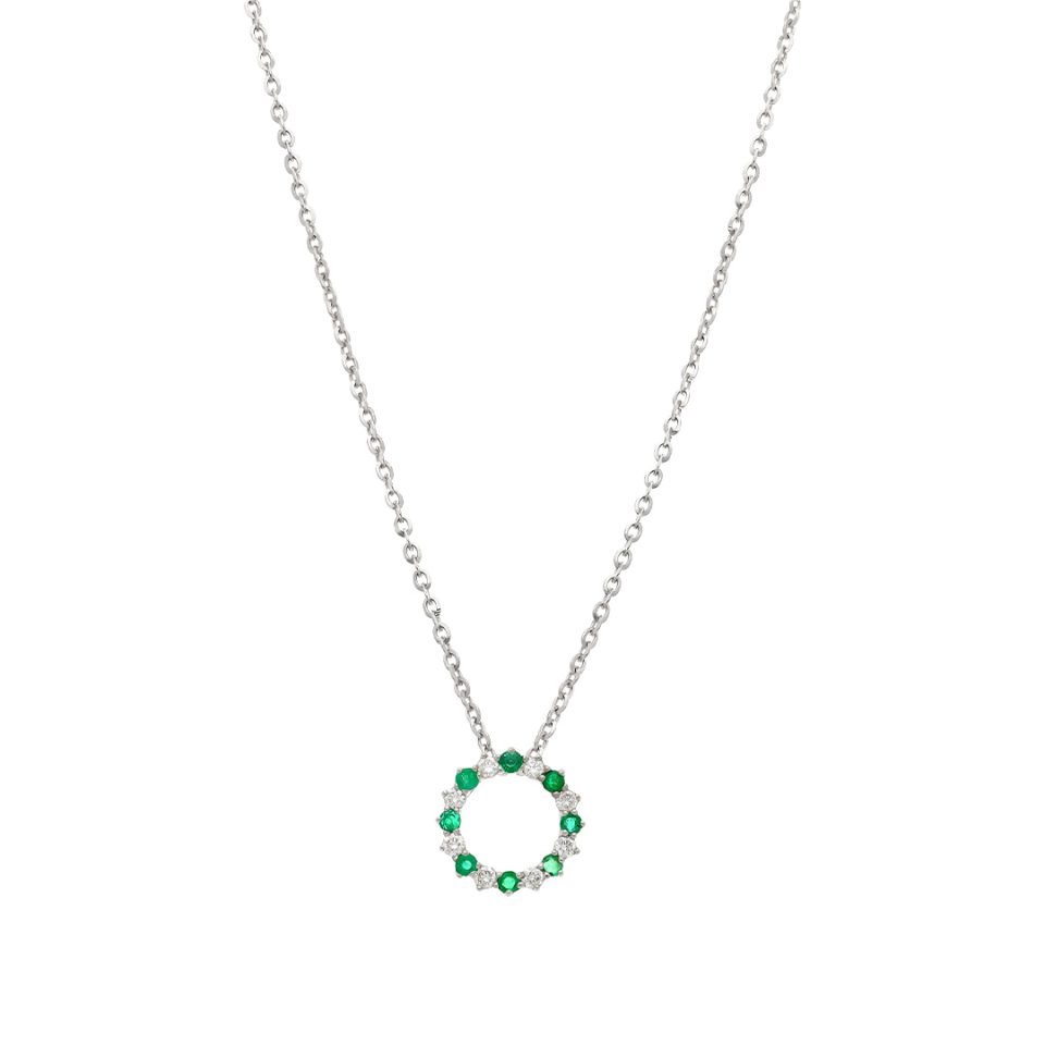 Gargantilla en oro blanco 18K con esmeralda y diamante