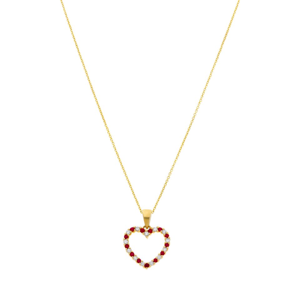 Gargantilla en oro amarillo 14K con rubí y diamante