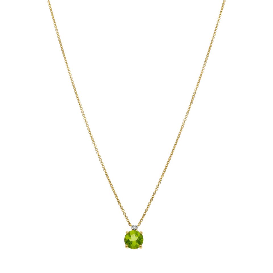 Gargantilla en oro combinado 14K con peridoto y diamante