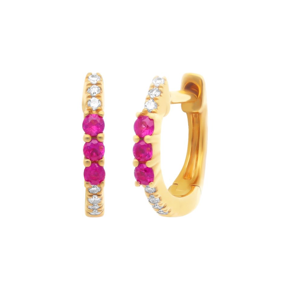 Coquetas en oro blanco 14K con rubí y diamante