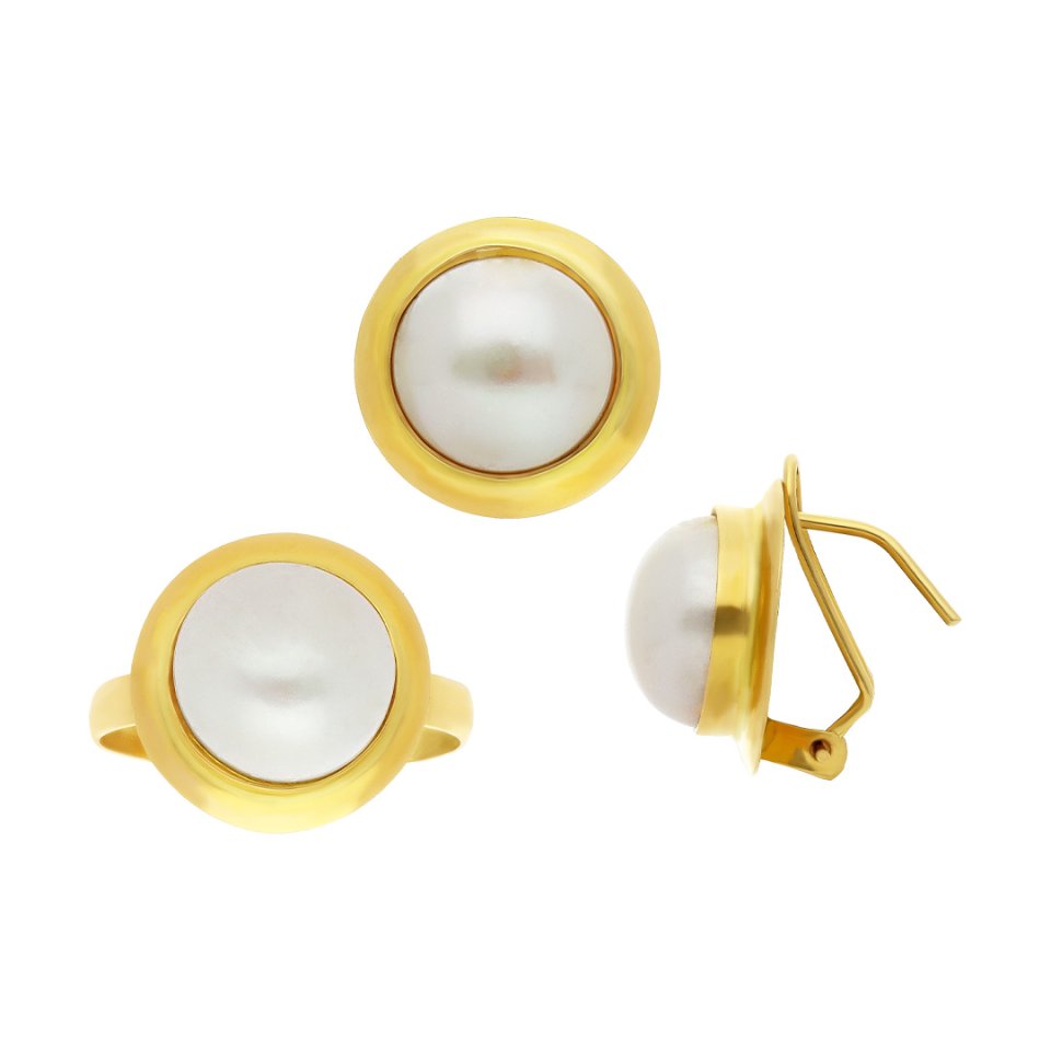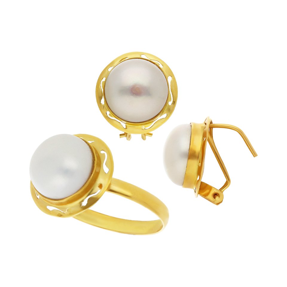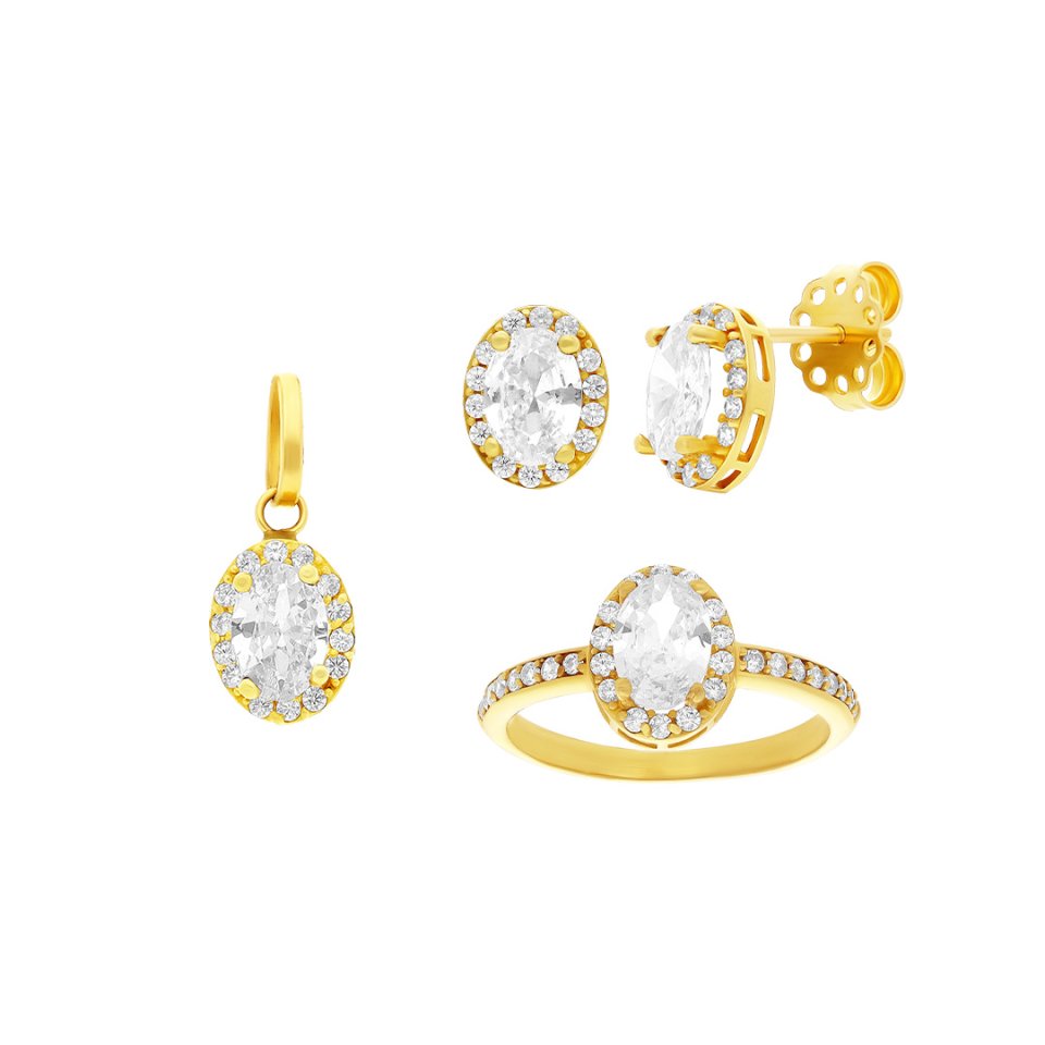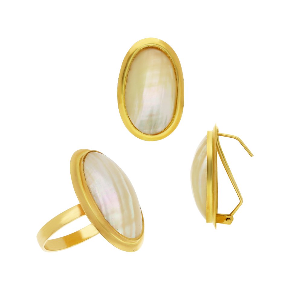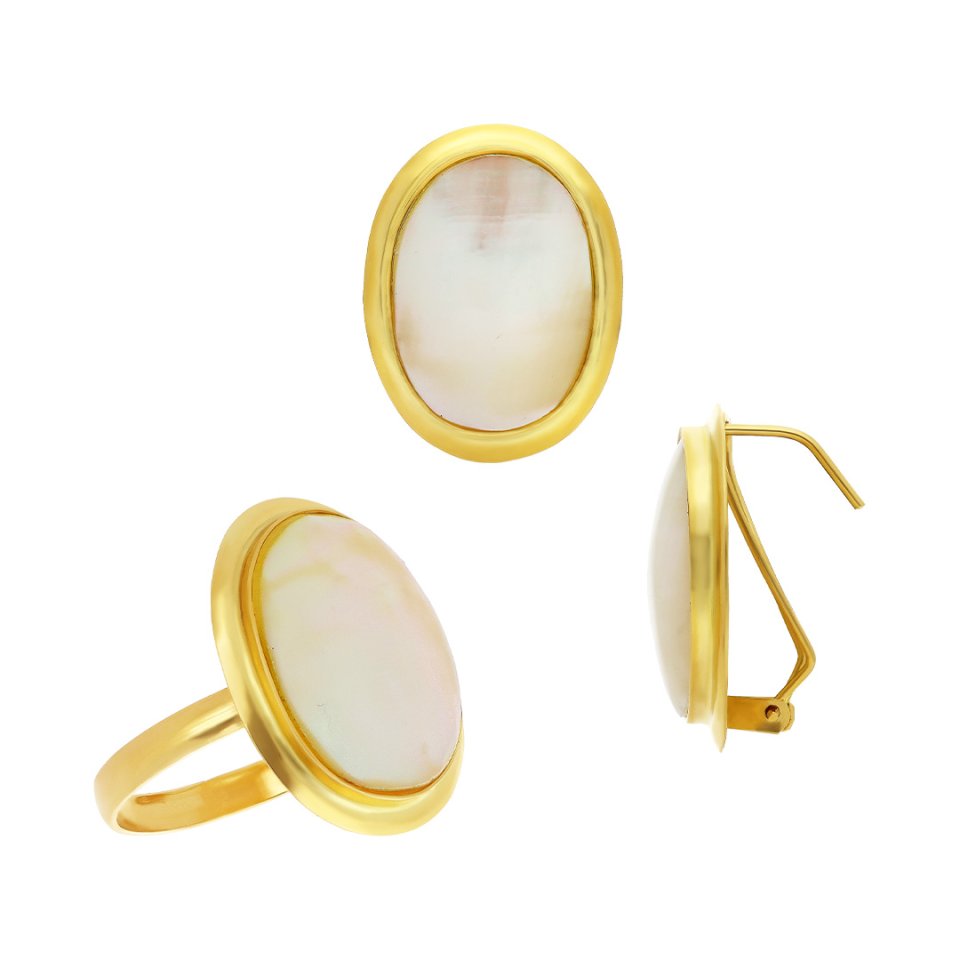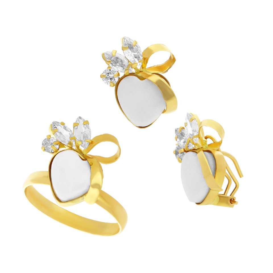 Juego en oro amarillo 10K con concha nacar y zirconia